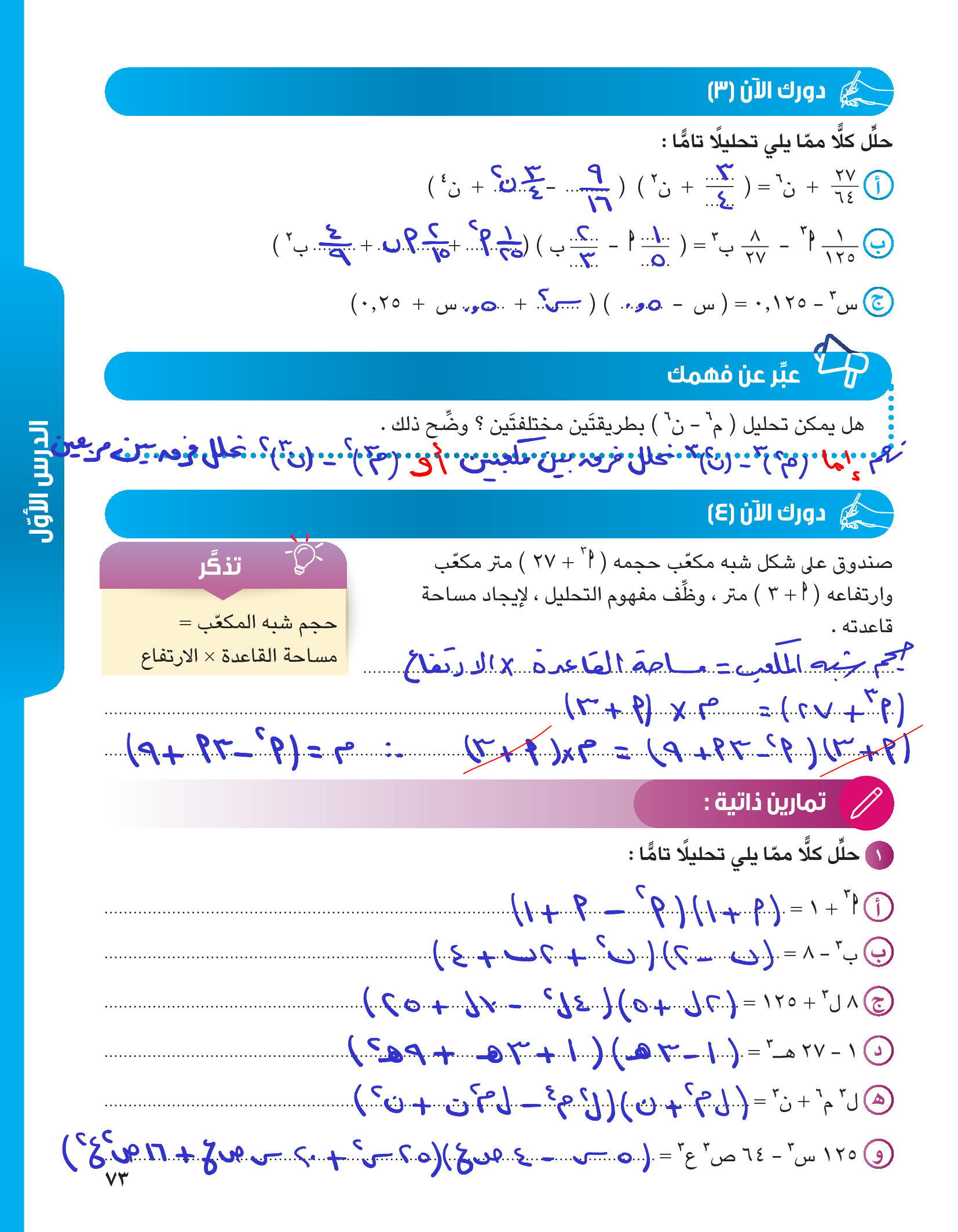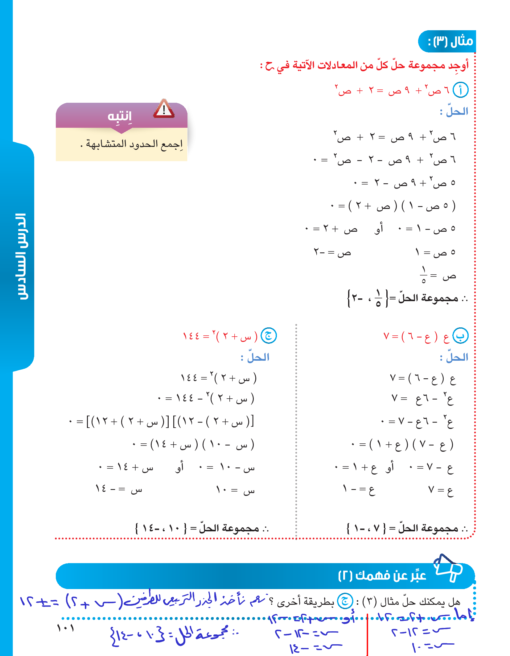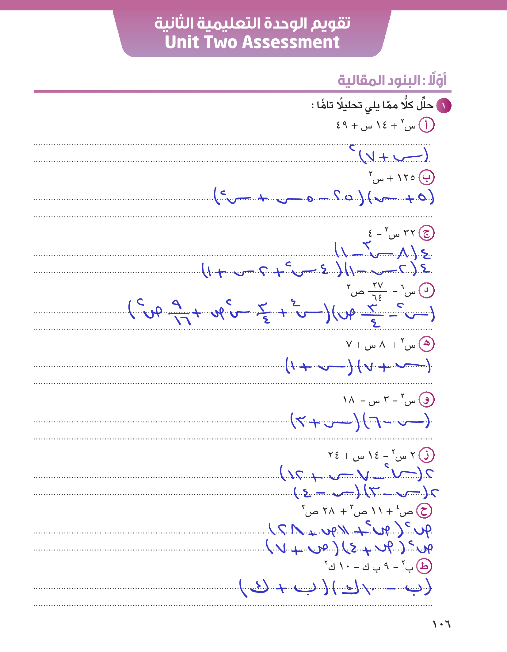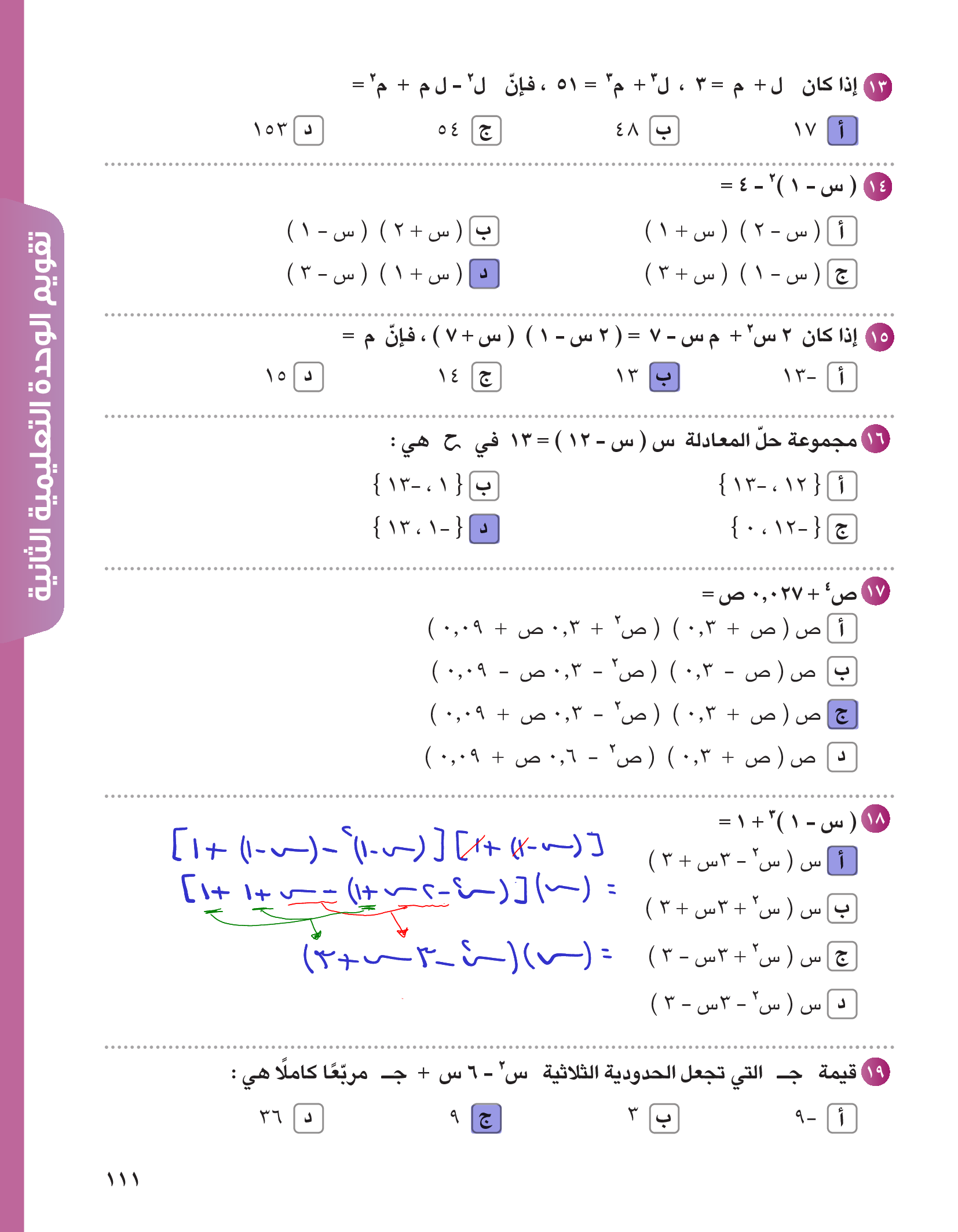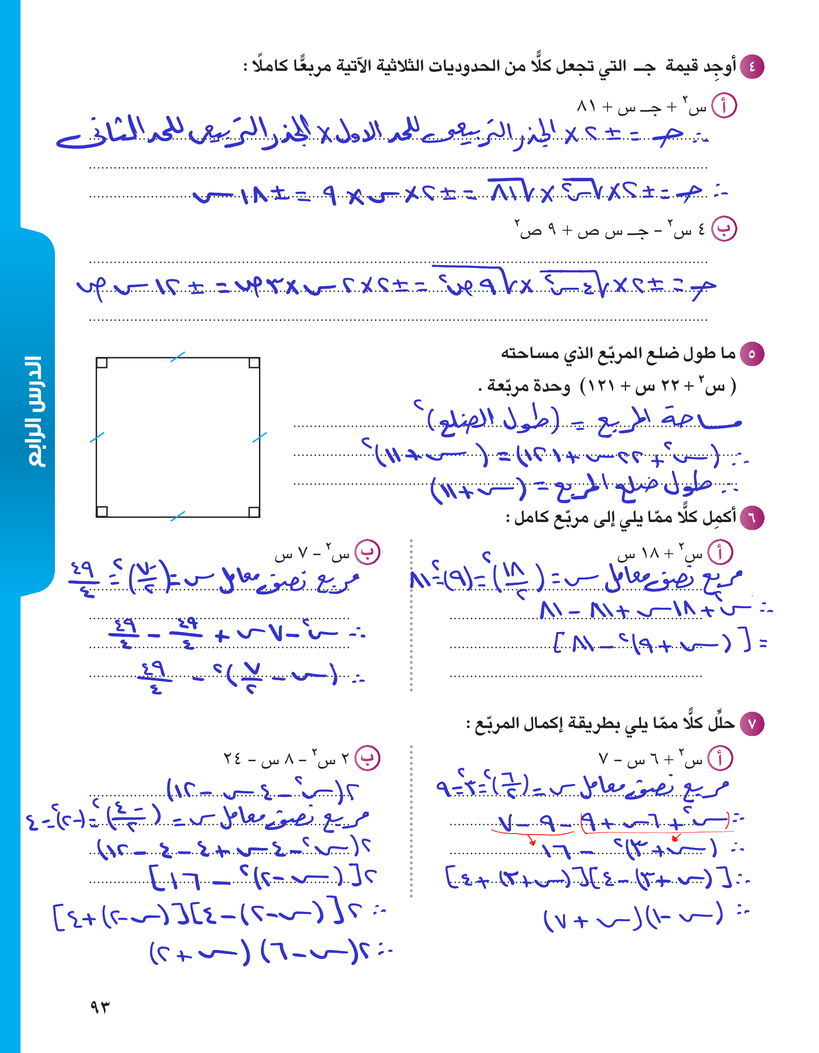 تحليل الحدودية الثلاثية: س2 + ب س + جـ