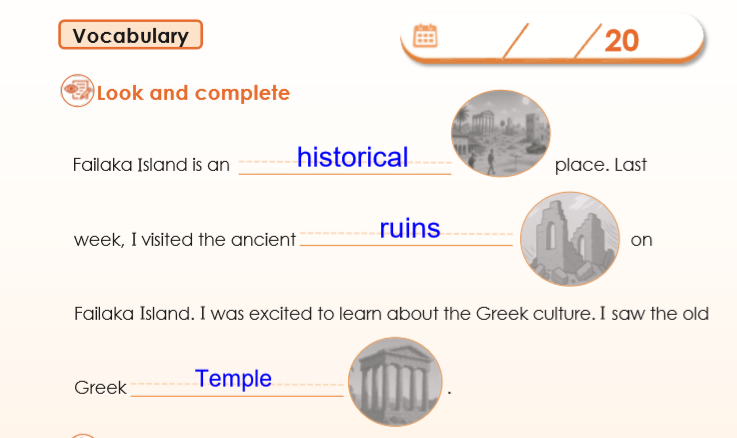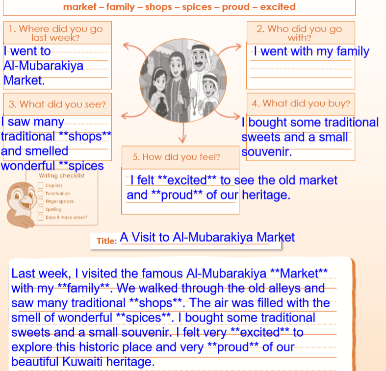 Fill in the graphic organiser then use it to write a paragraph about ‘AlMubarakiya’. The following guide words may help you