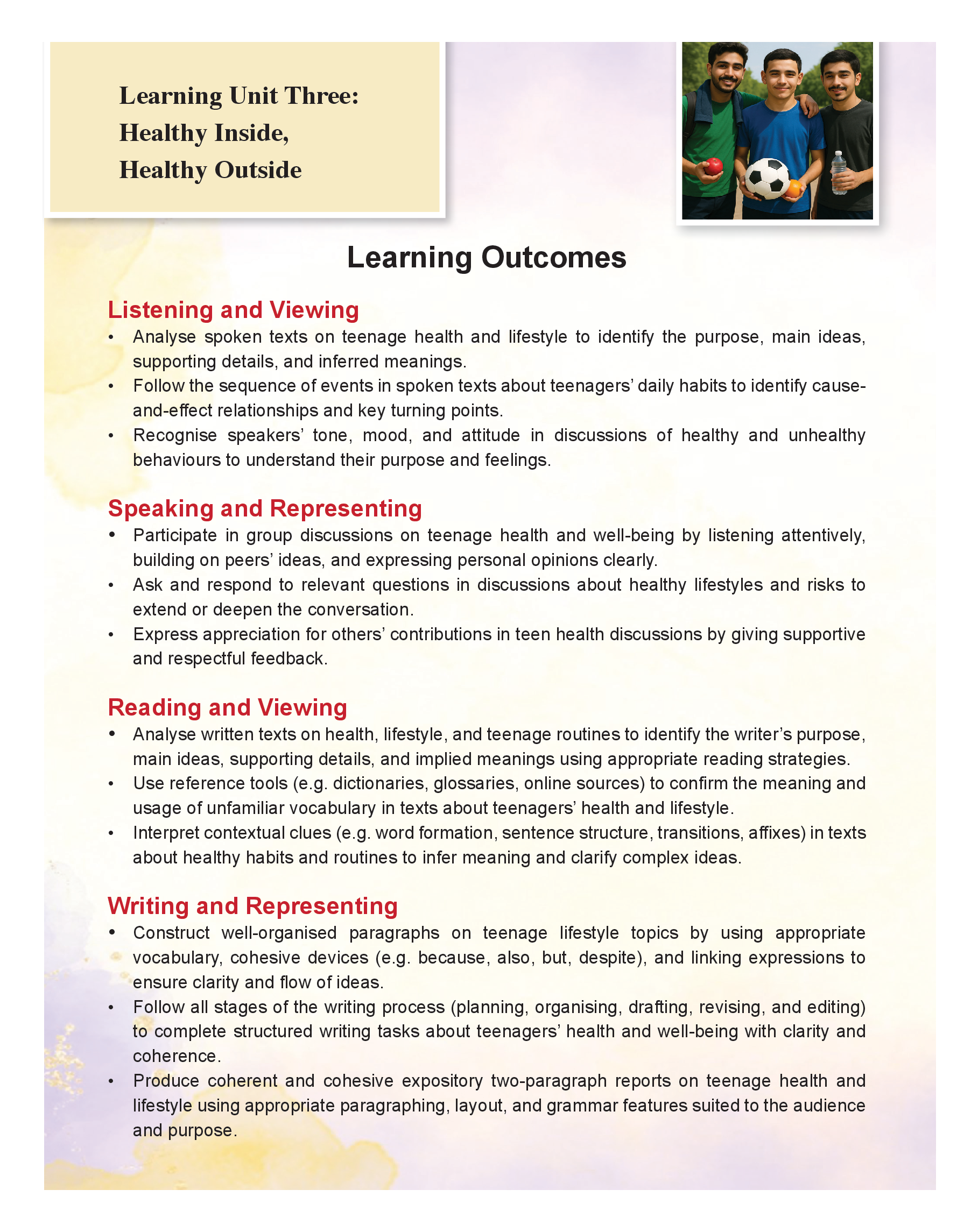 الوحدة الثالثة Healthy Inside, Healthy Outside