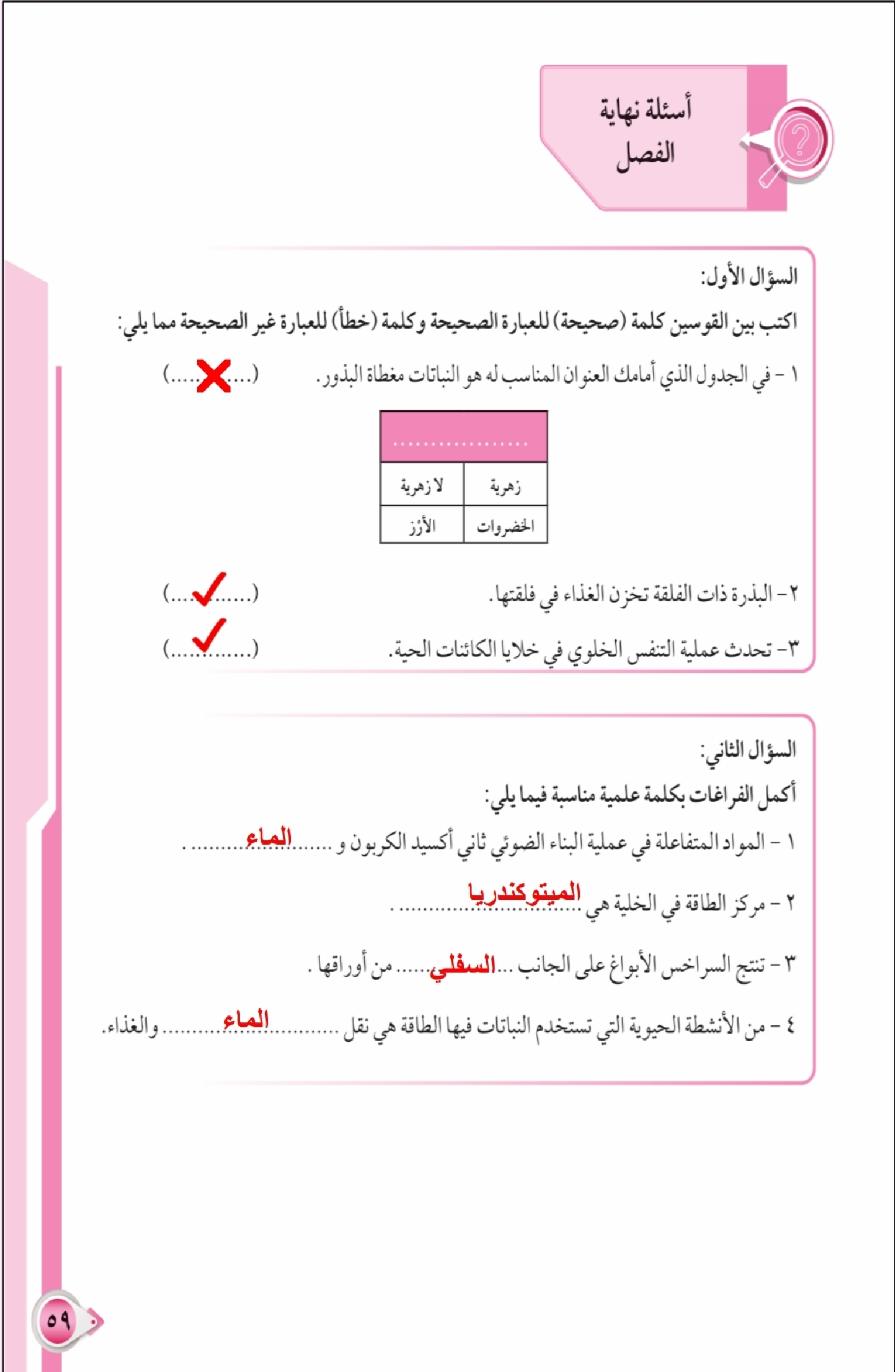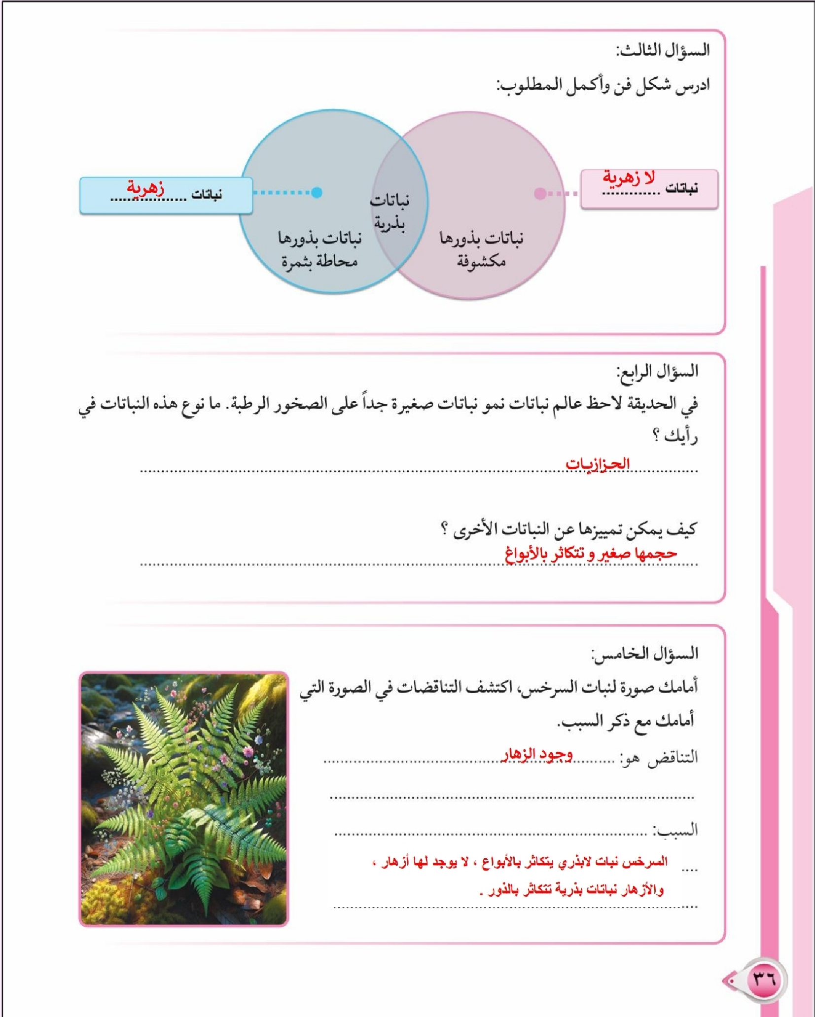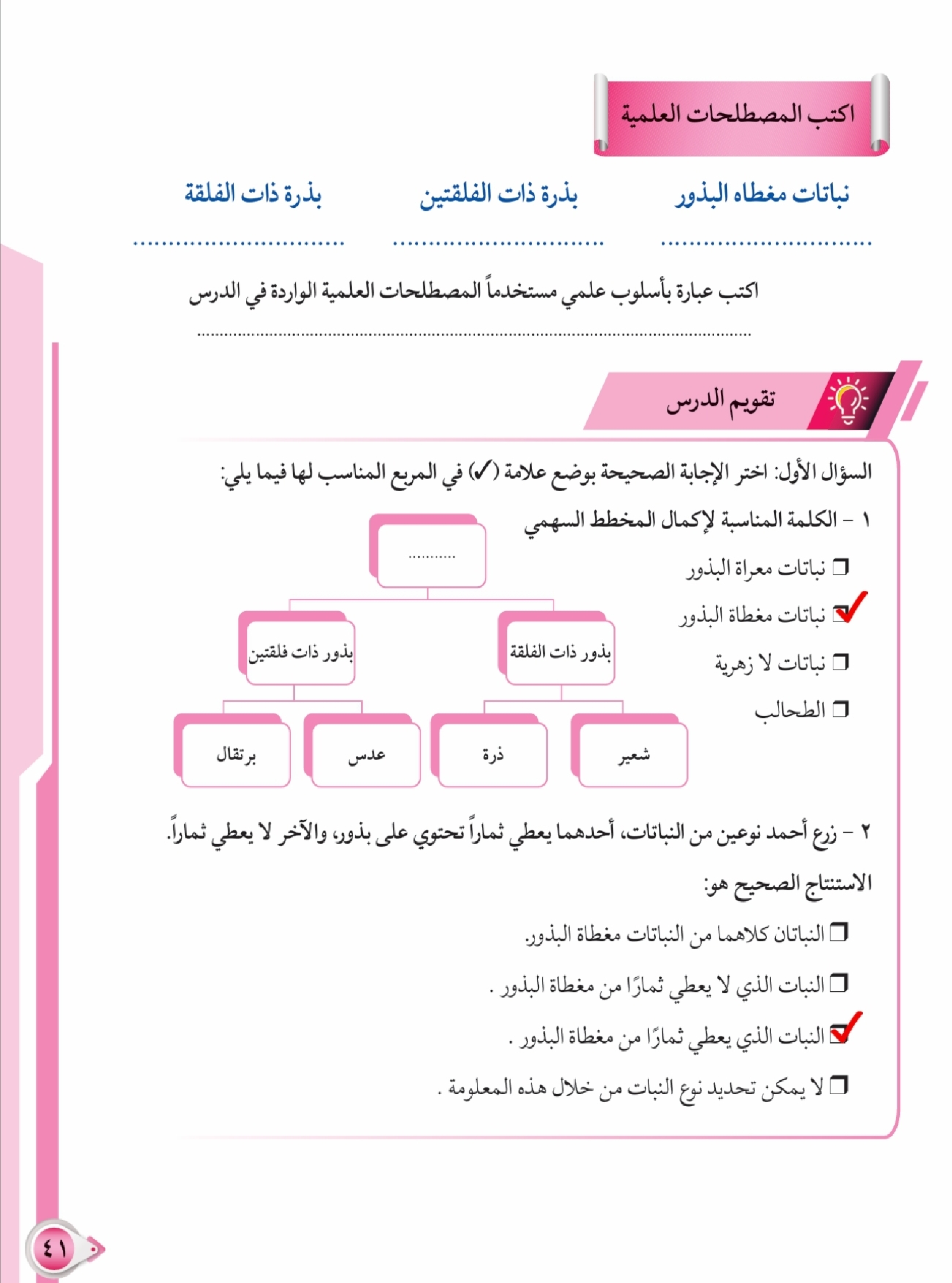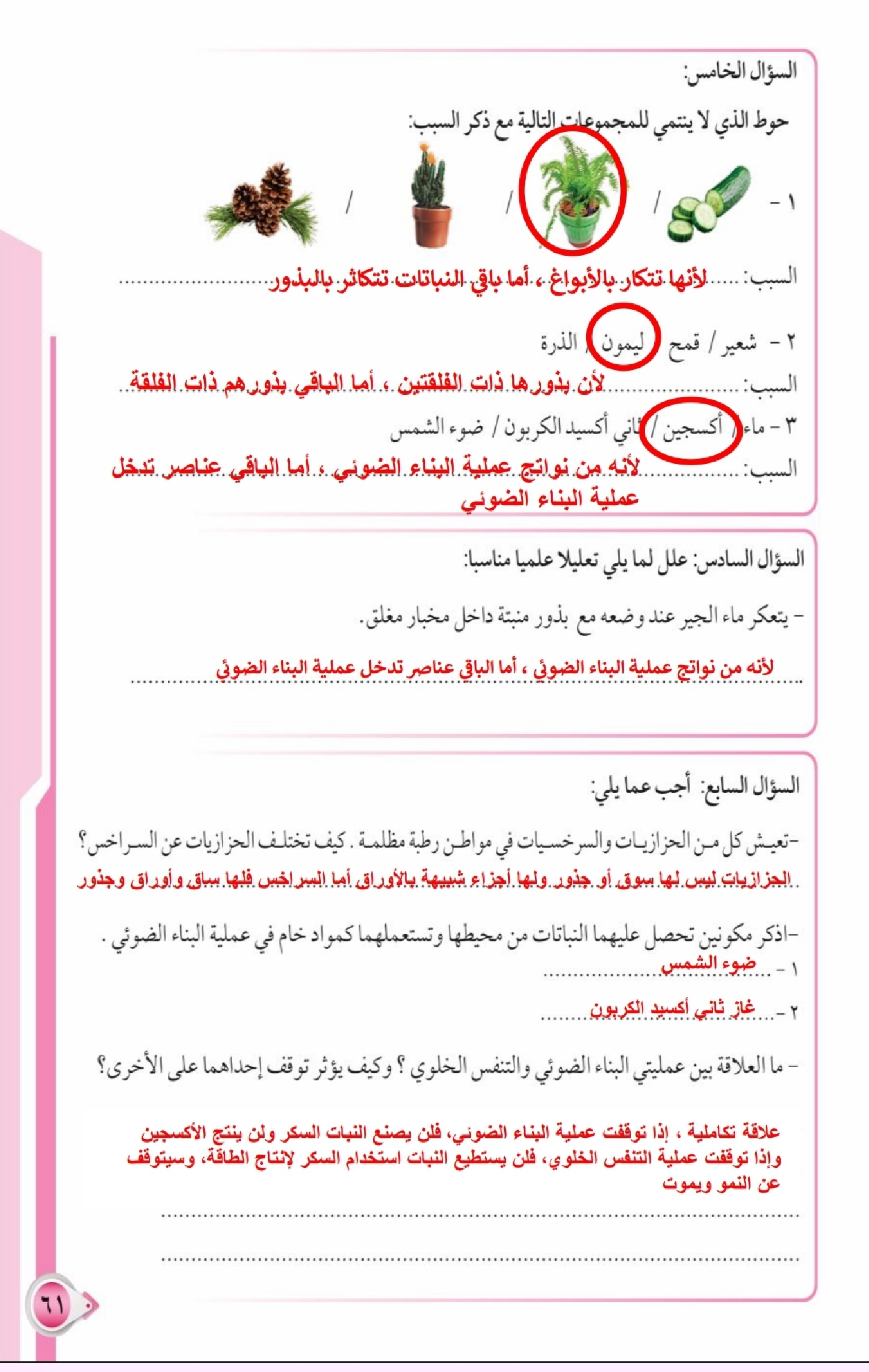 أسئلة نهاية فصل رحلة في مملكة النباتات