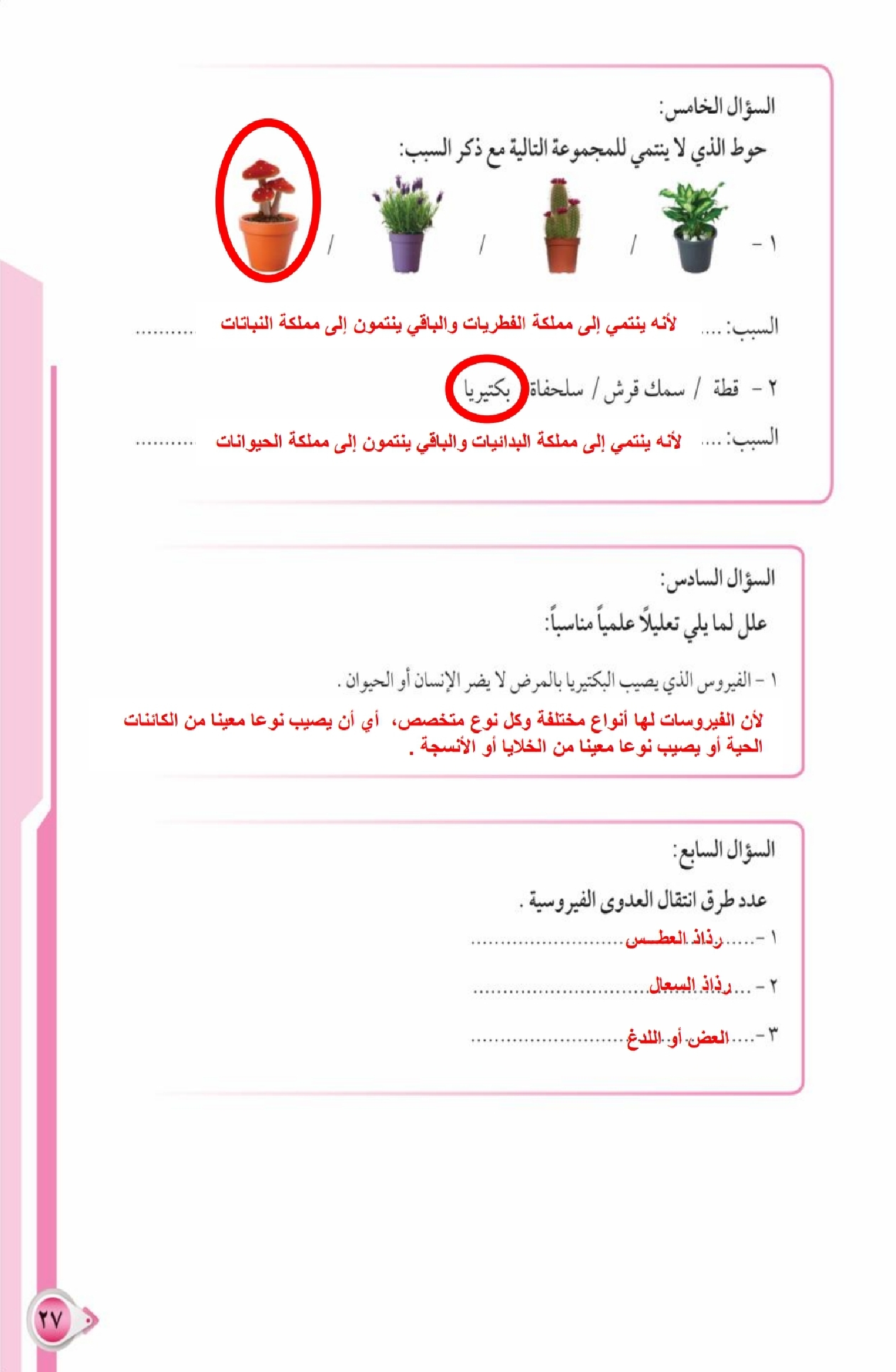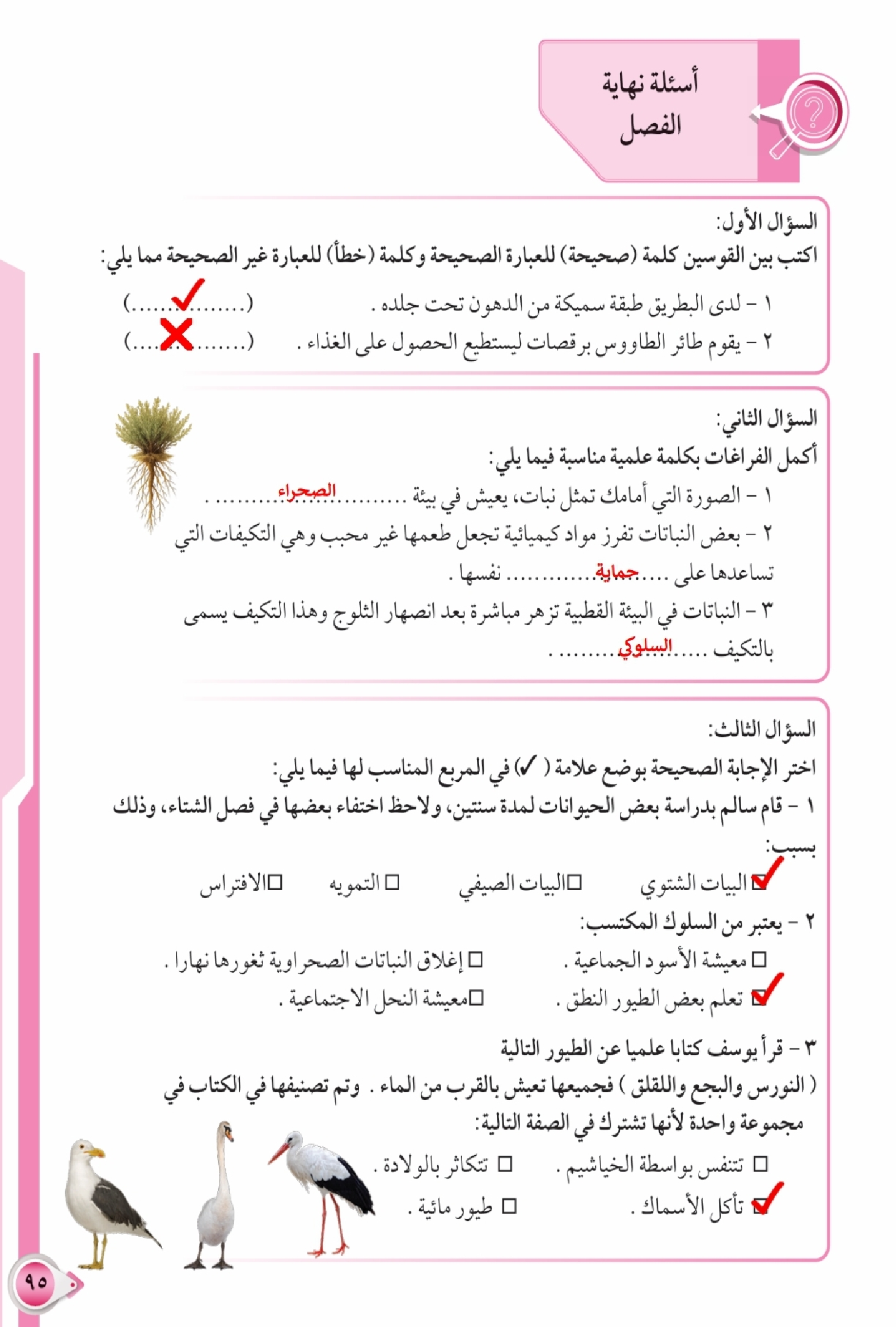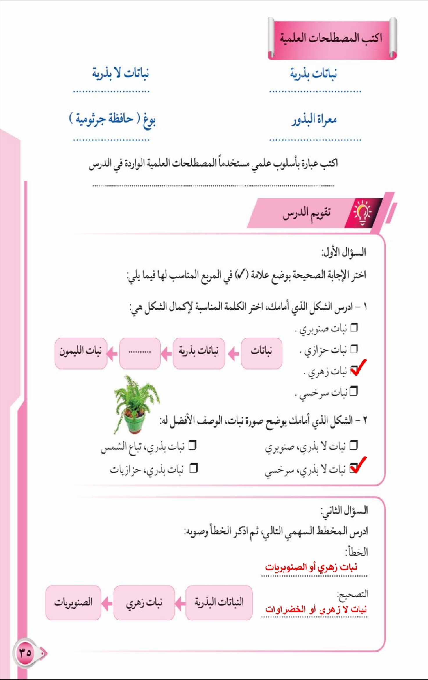 أسئلة نهاية فصل رحلة في مملكة النباتات