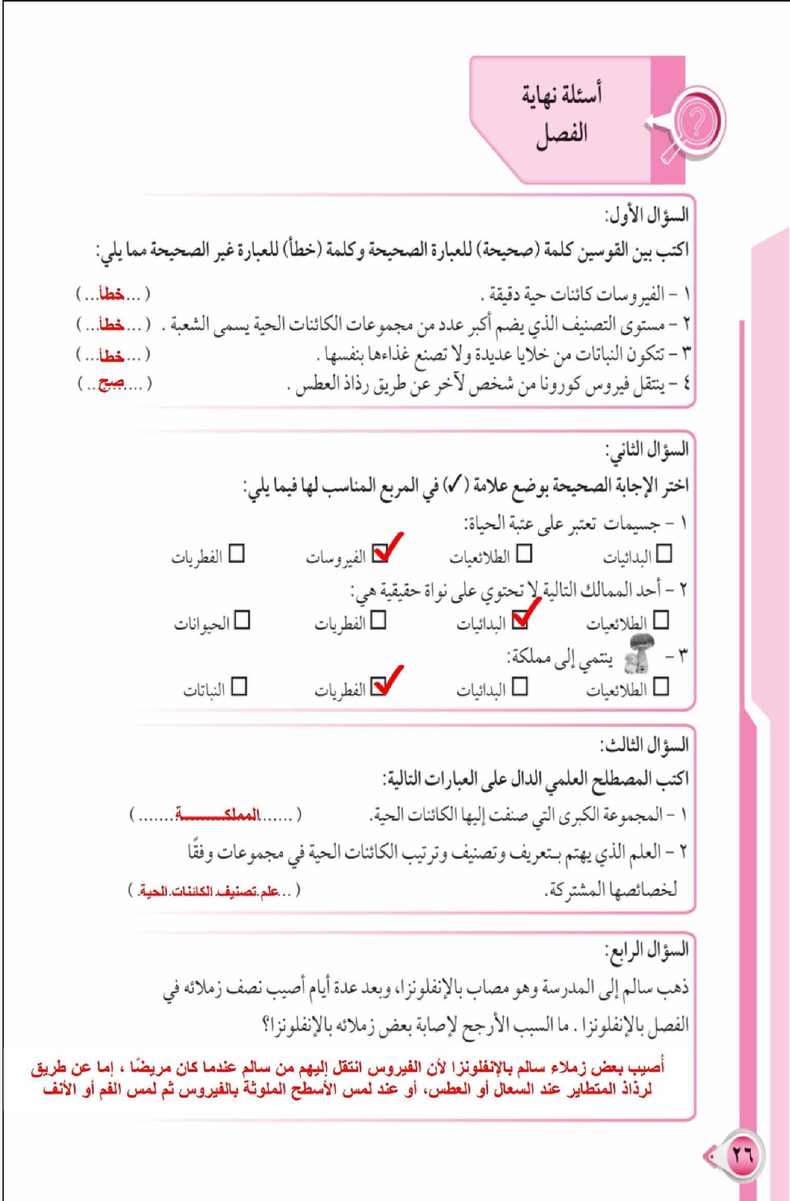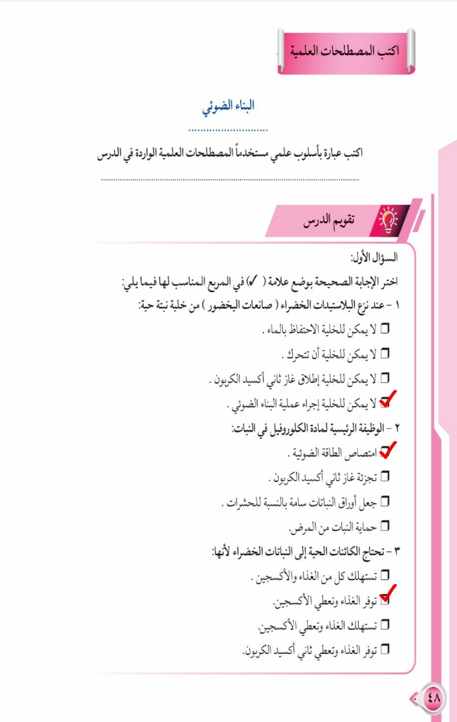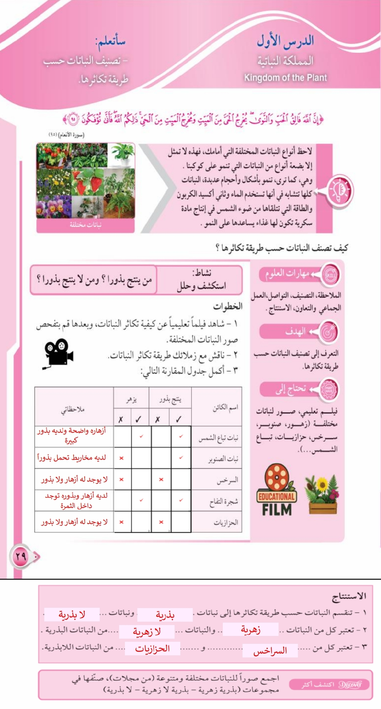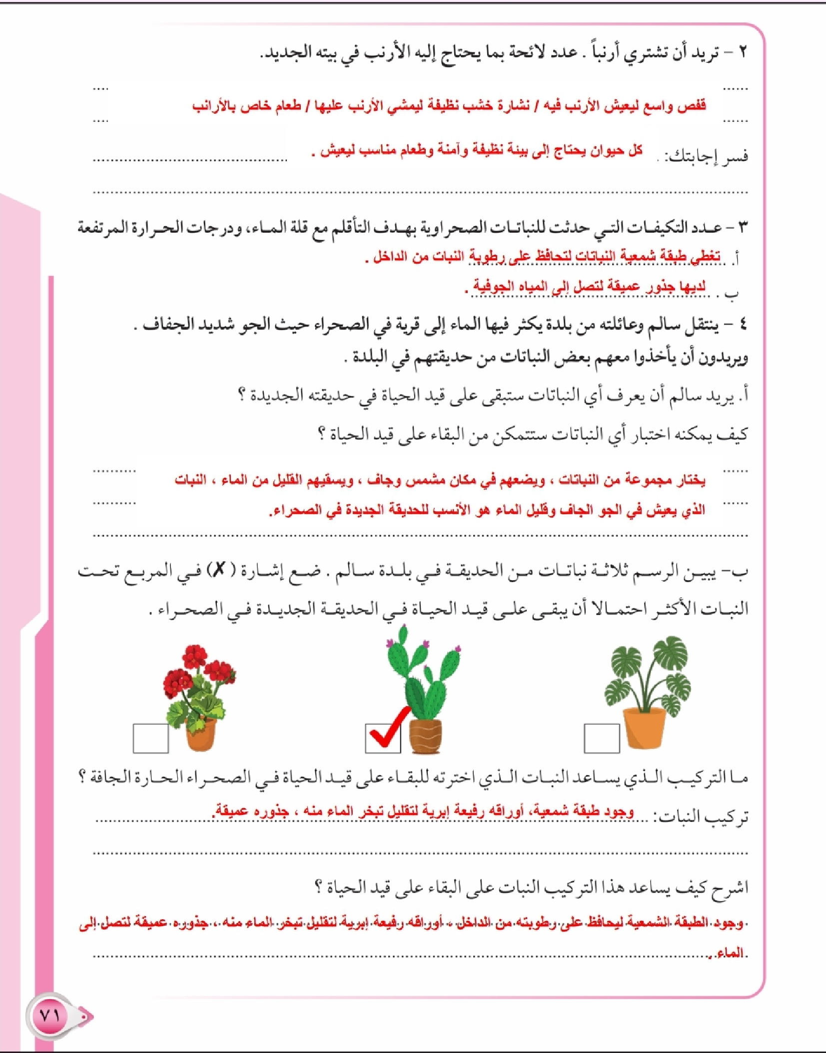 أسئلة نهاية فصل رحلة في مملكة النباتات