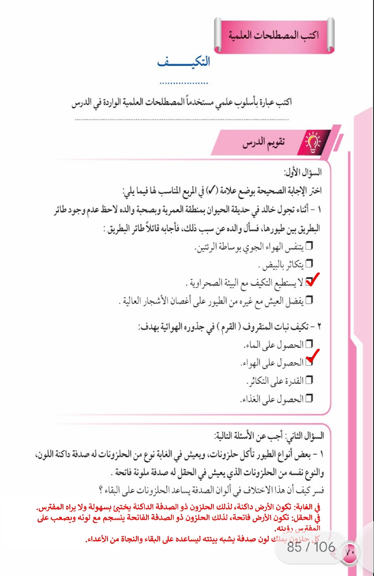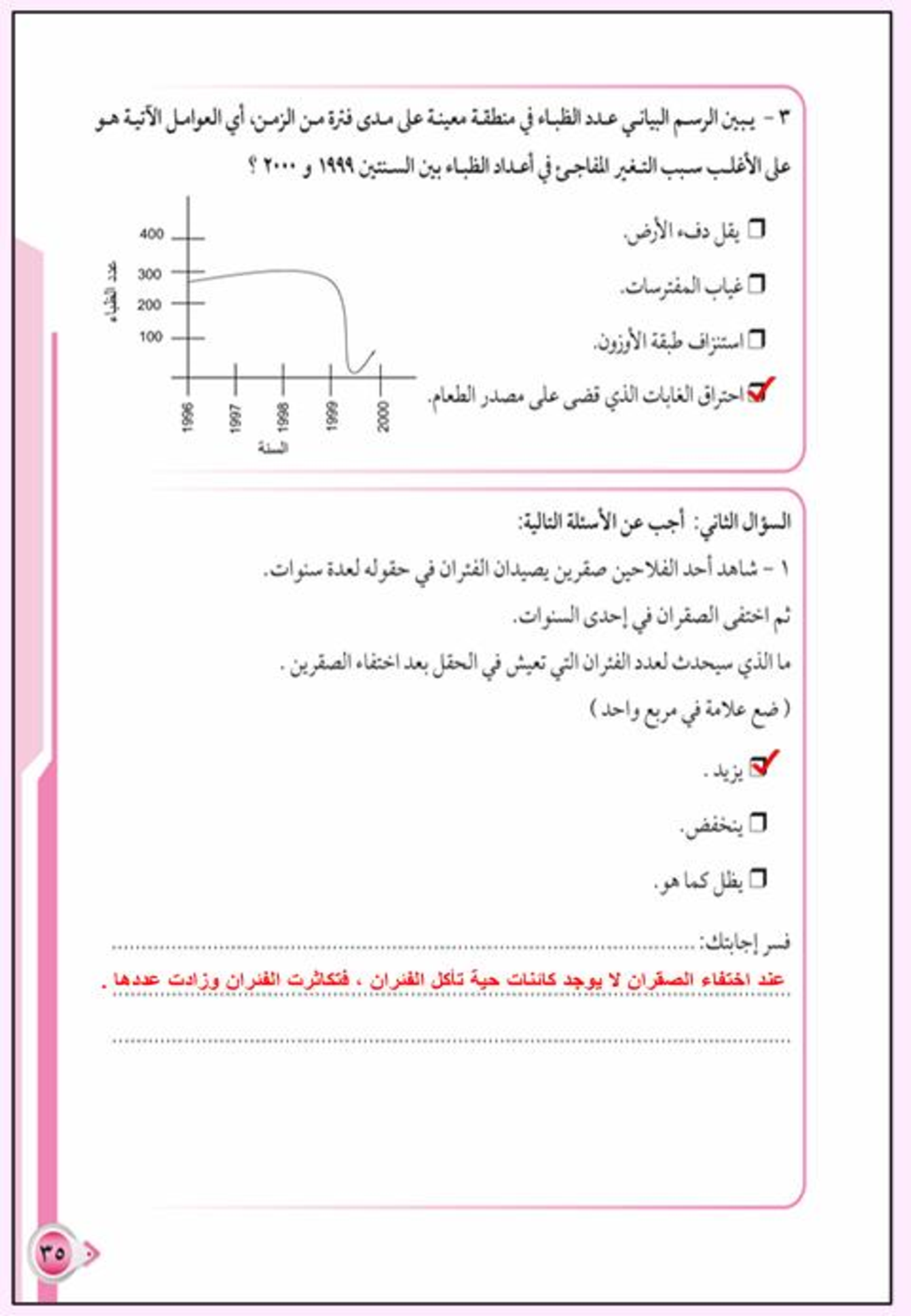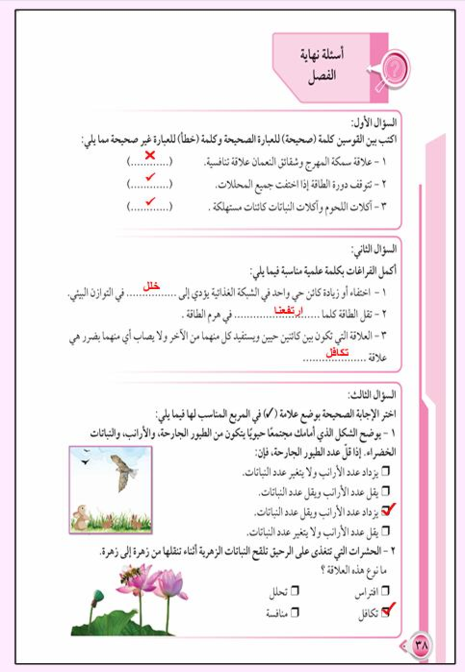 أسئلة نهاية فصل رحلة إلى قلب الطبيعة
