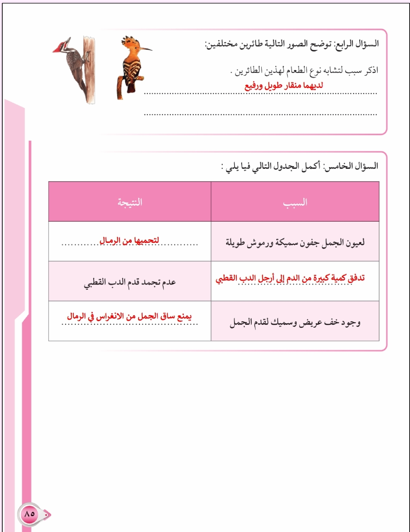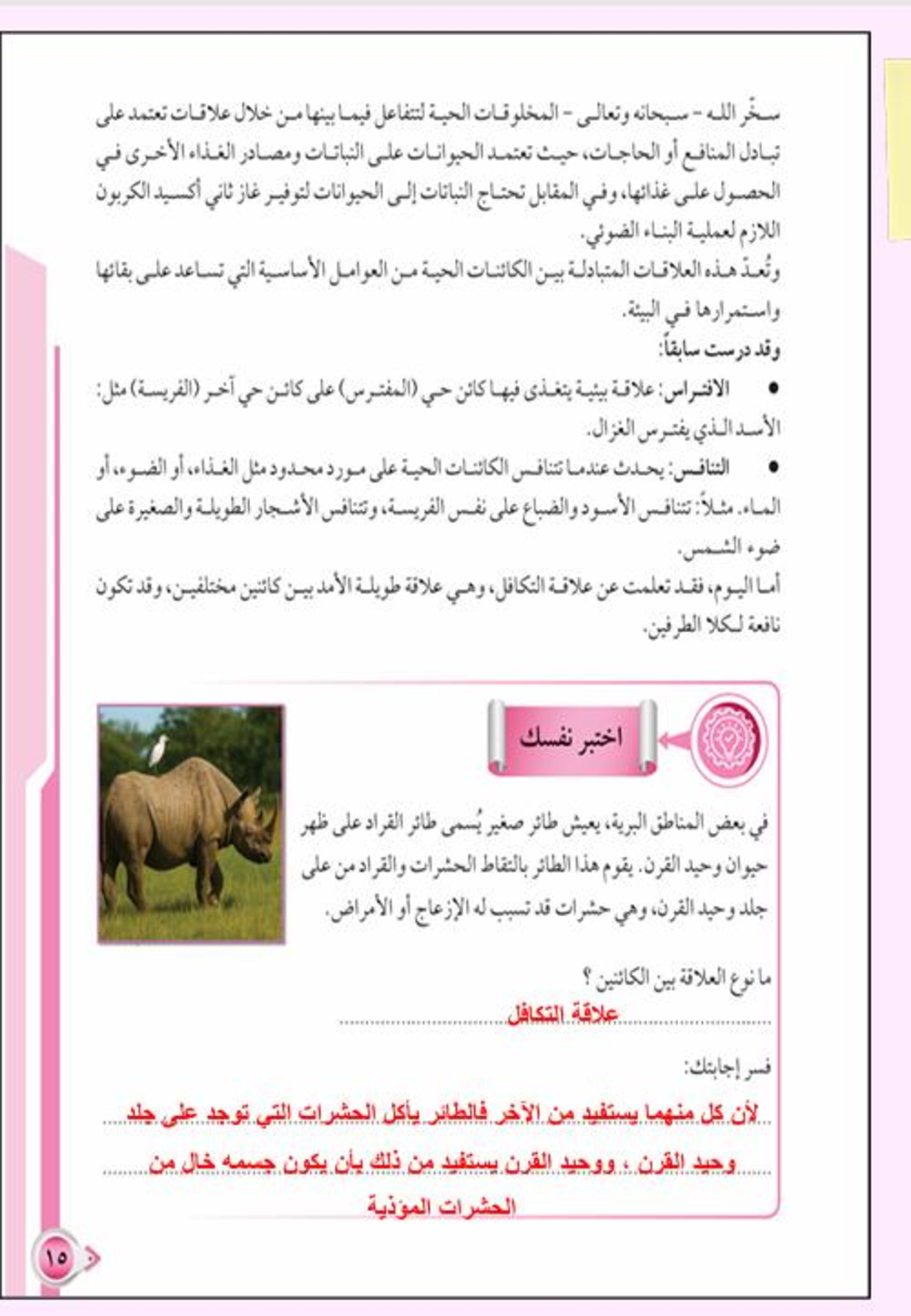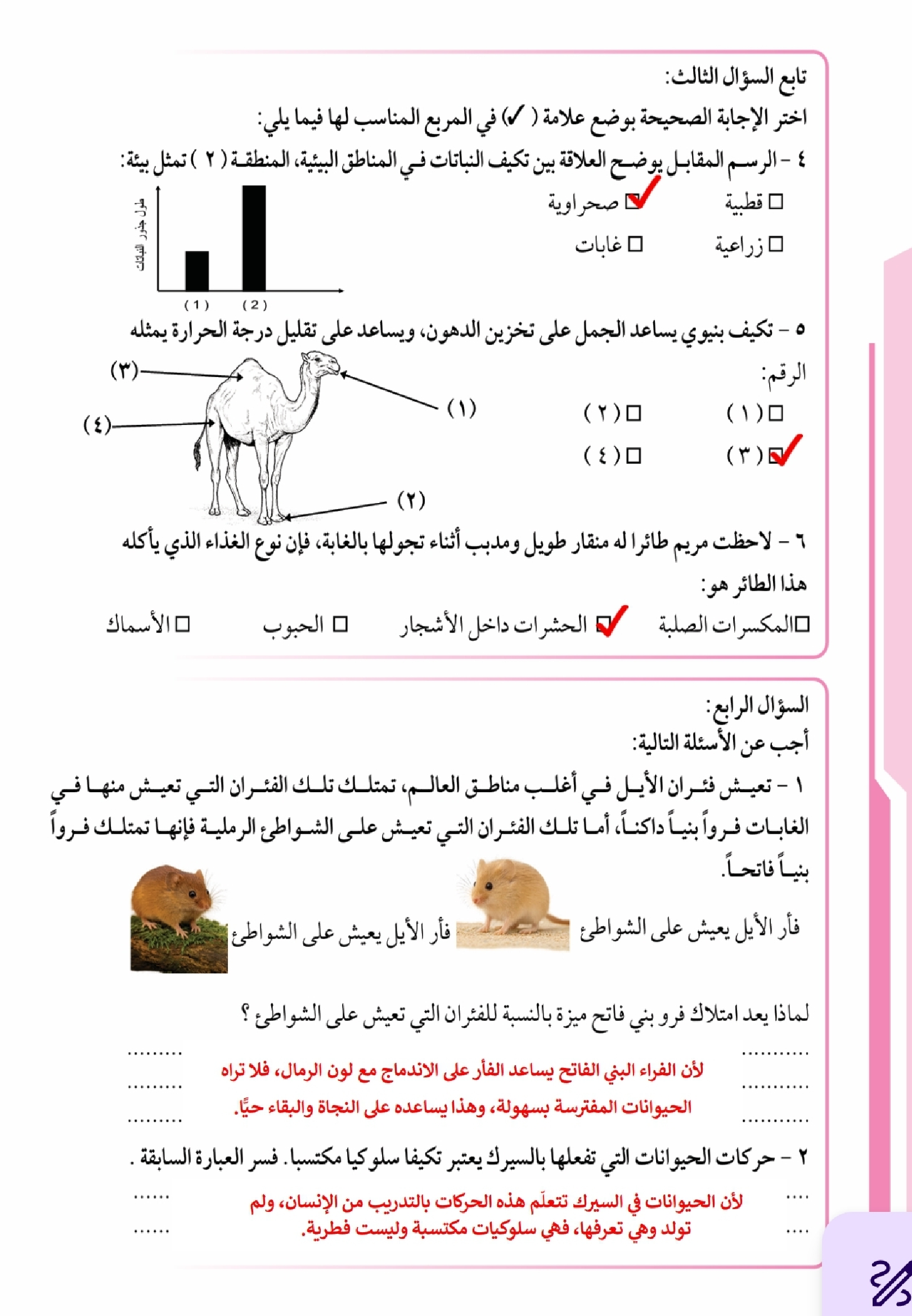 أسئلة نهاية فصل رحلة إلى قلب الطبيعة