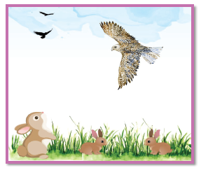 1-يوضح الشكل الذي أمامك مجتمعًا حيويًا يتكون من الطيور الجارحة، والأرانب، والنباتات الخضراء. إذا قلّ عدد الطيور الجارحة، فإن: