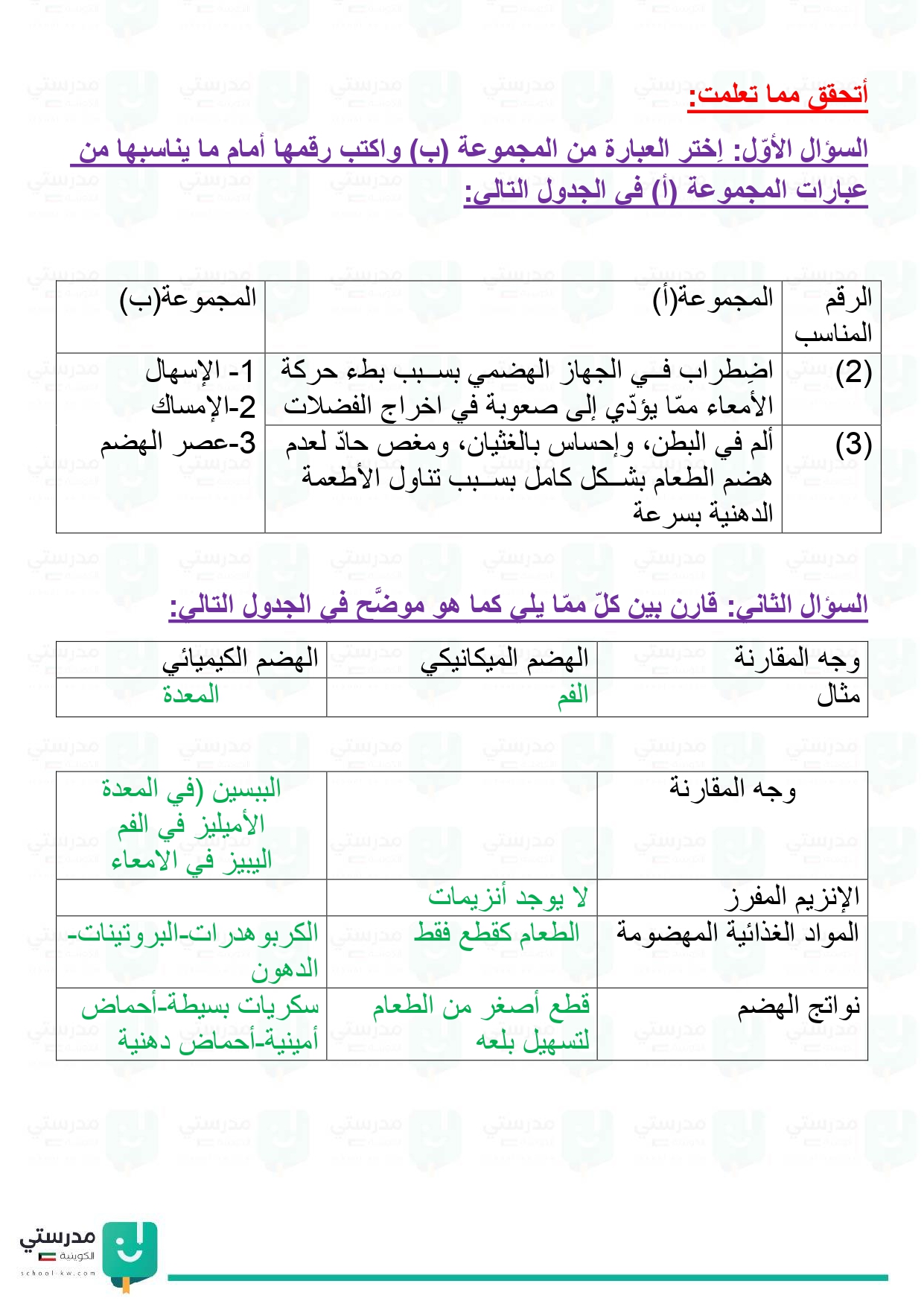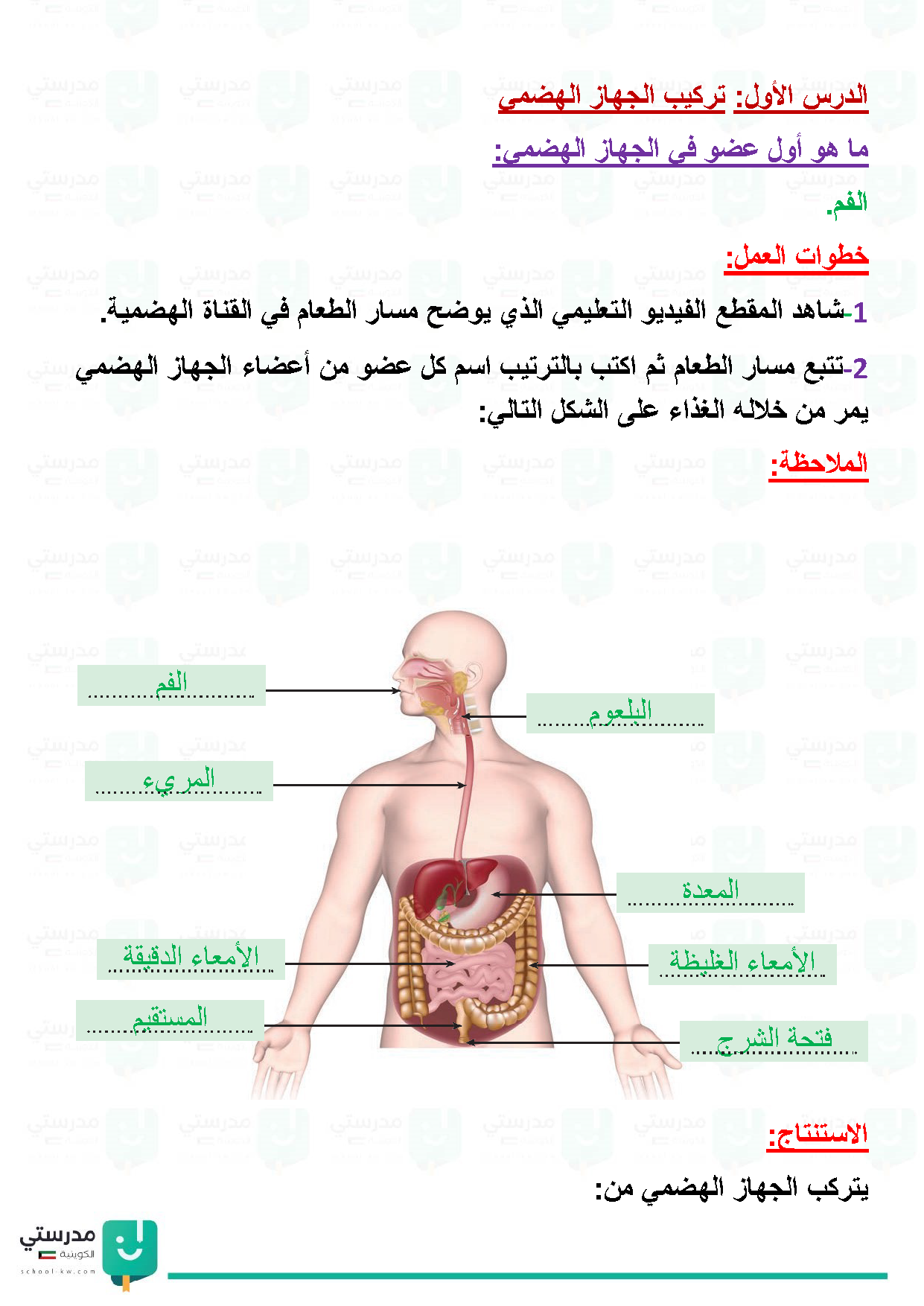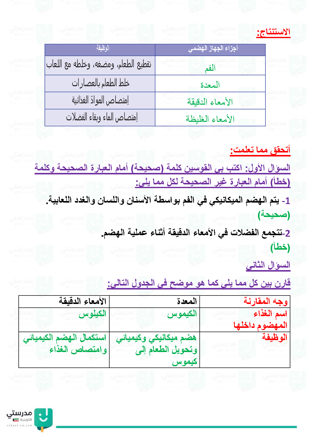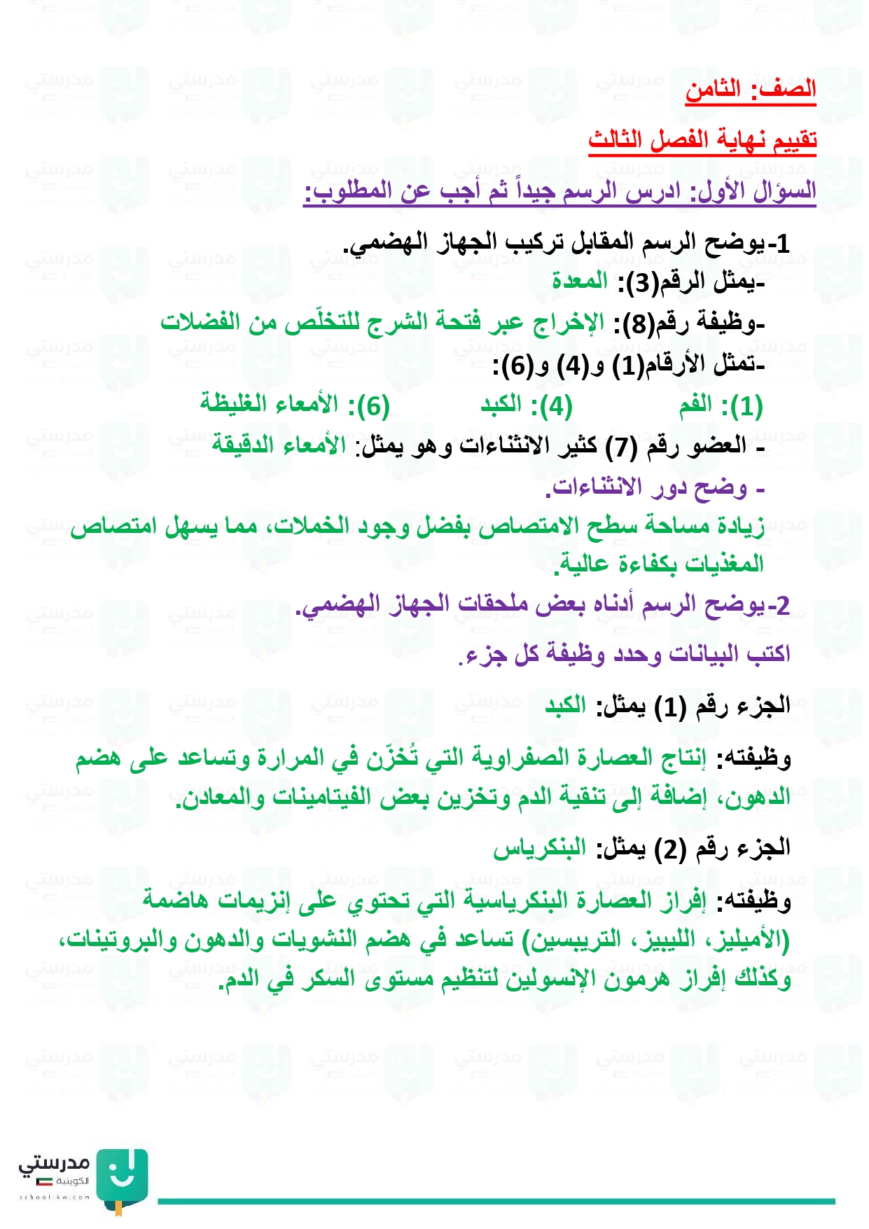 تقويم فصل الجهاز الهضمي