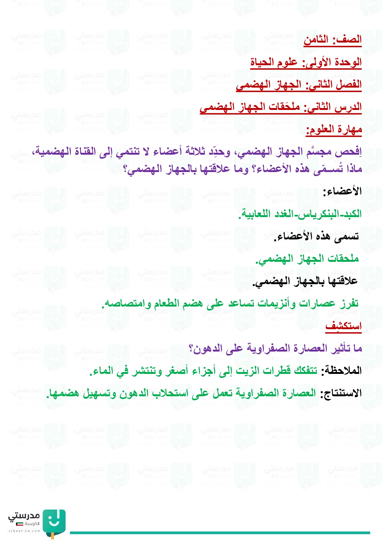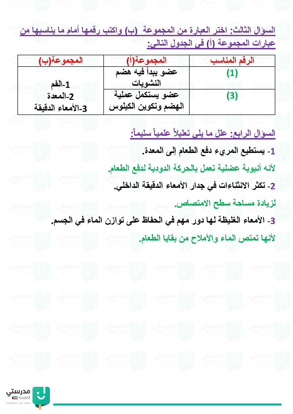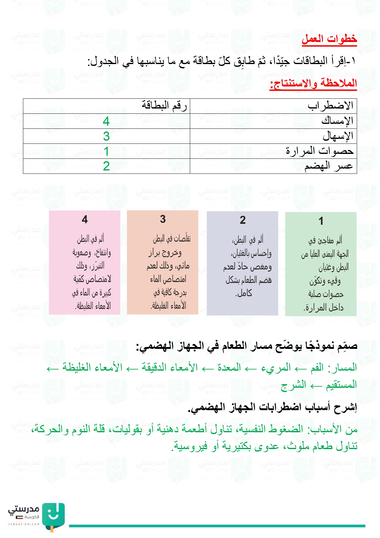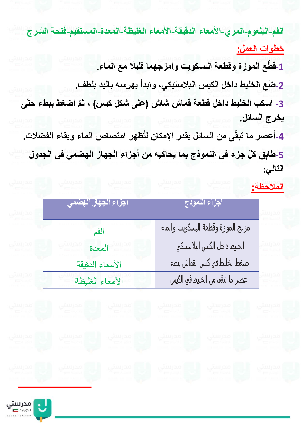 تقويم فصل الجهاز الهضمي