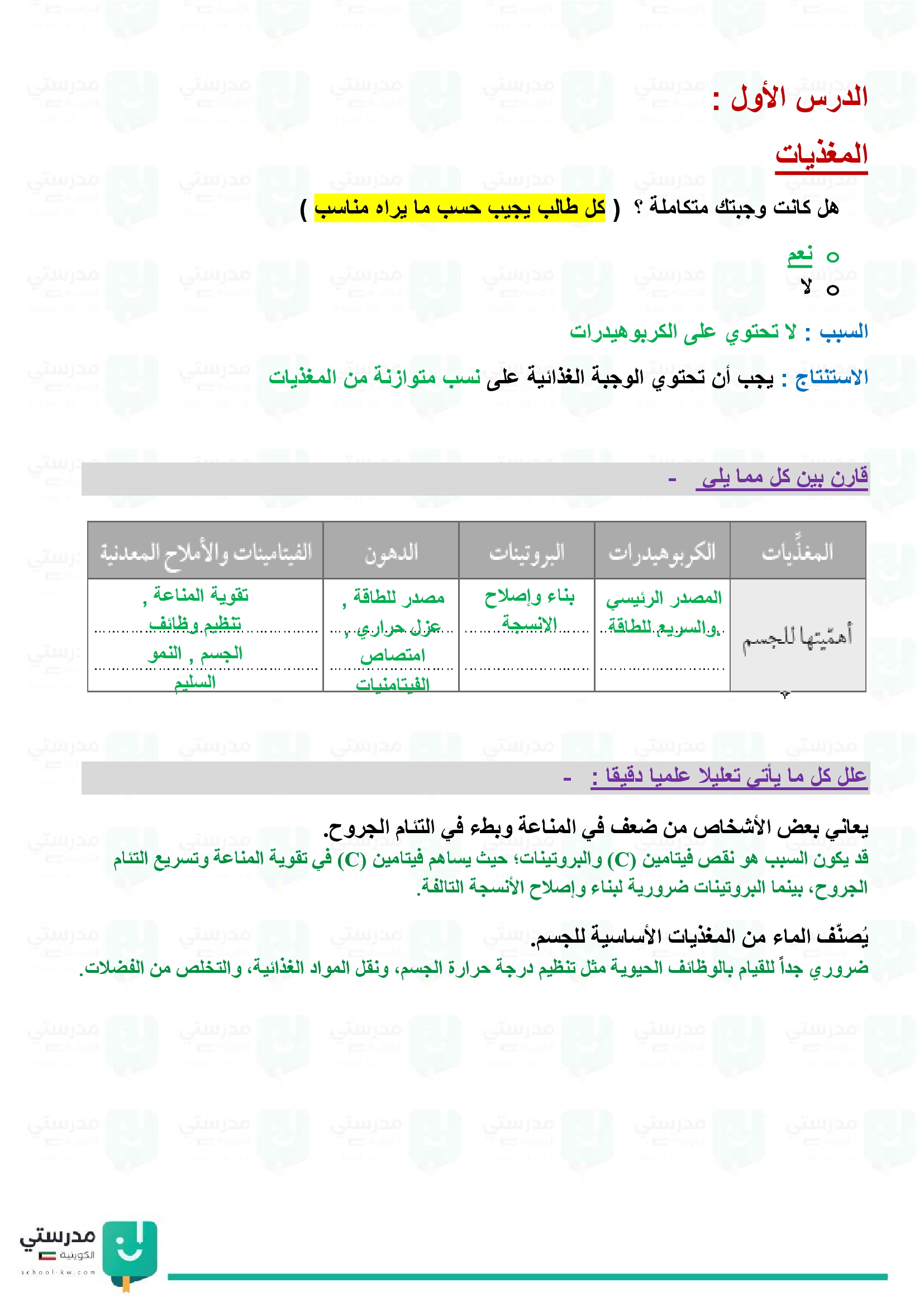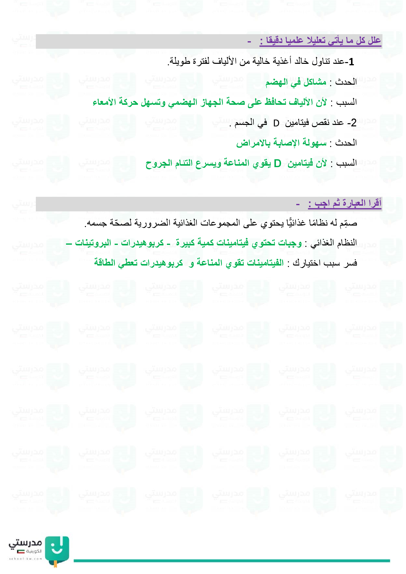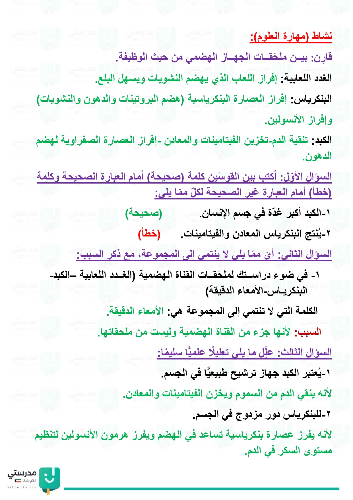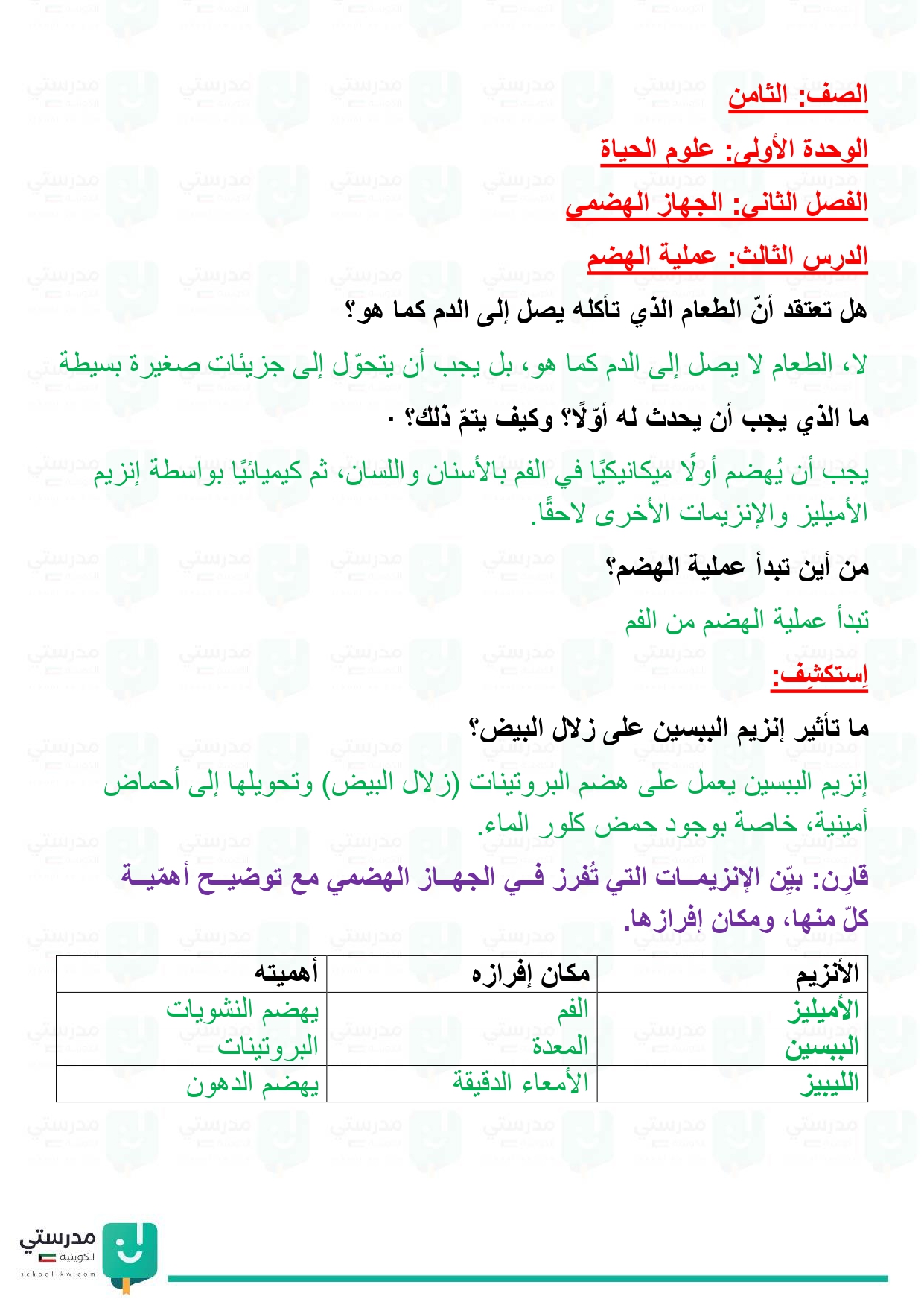 تقويم فصل الجهاز الهضمي