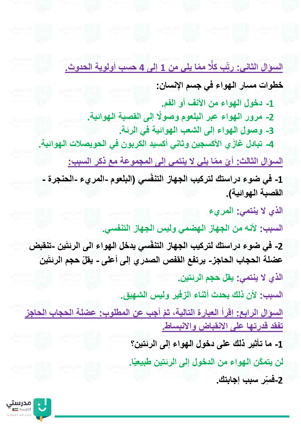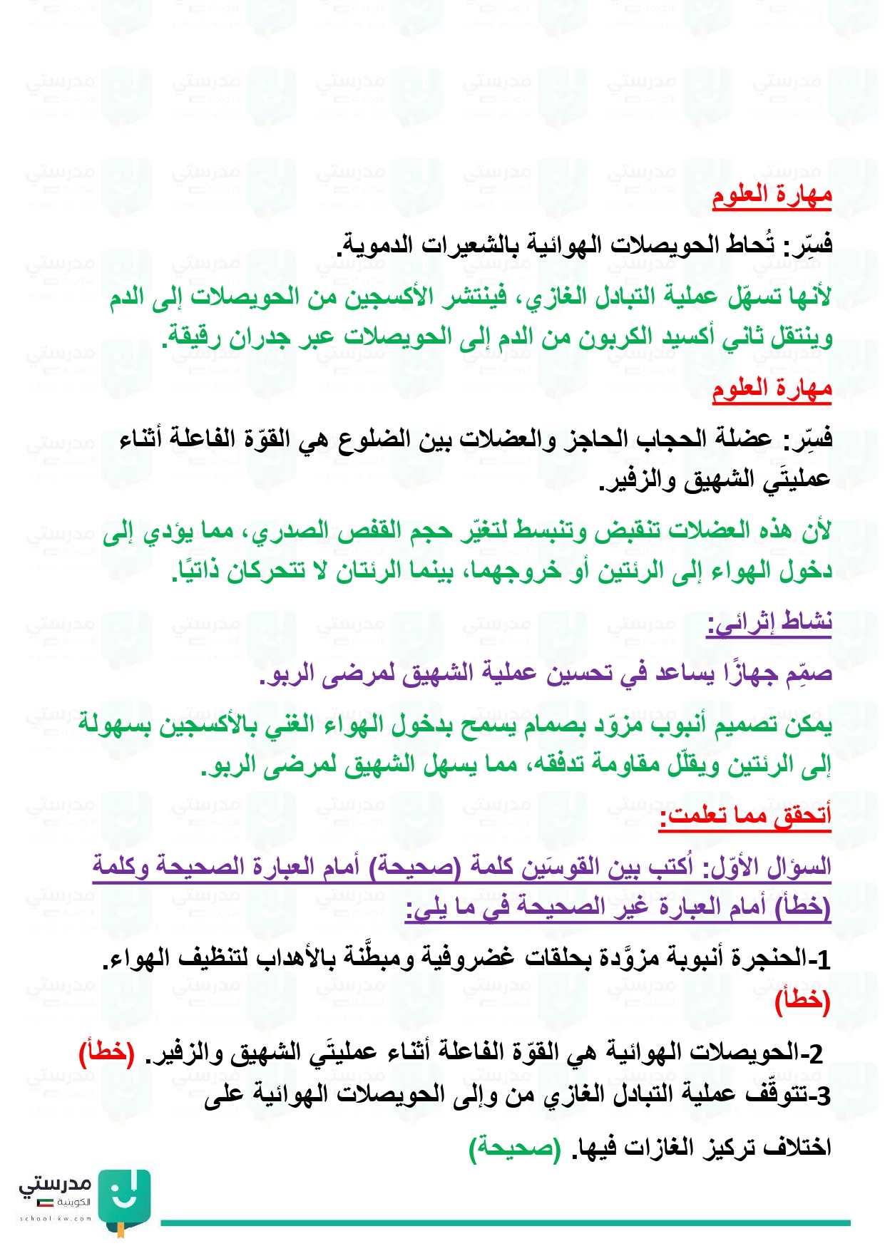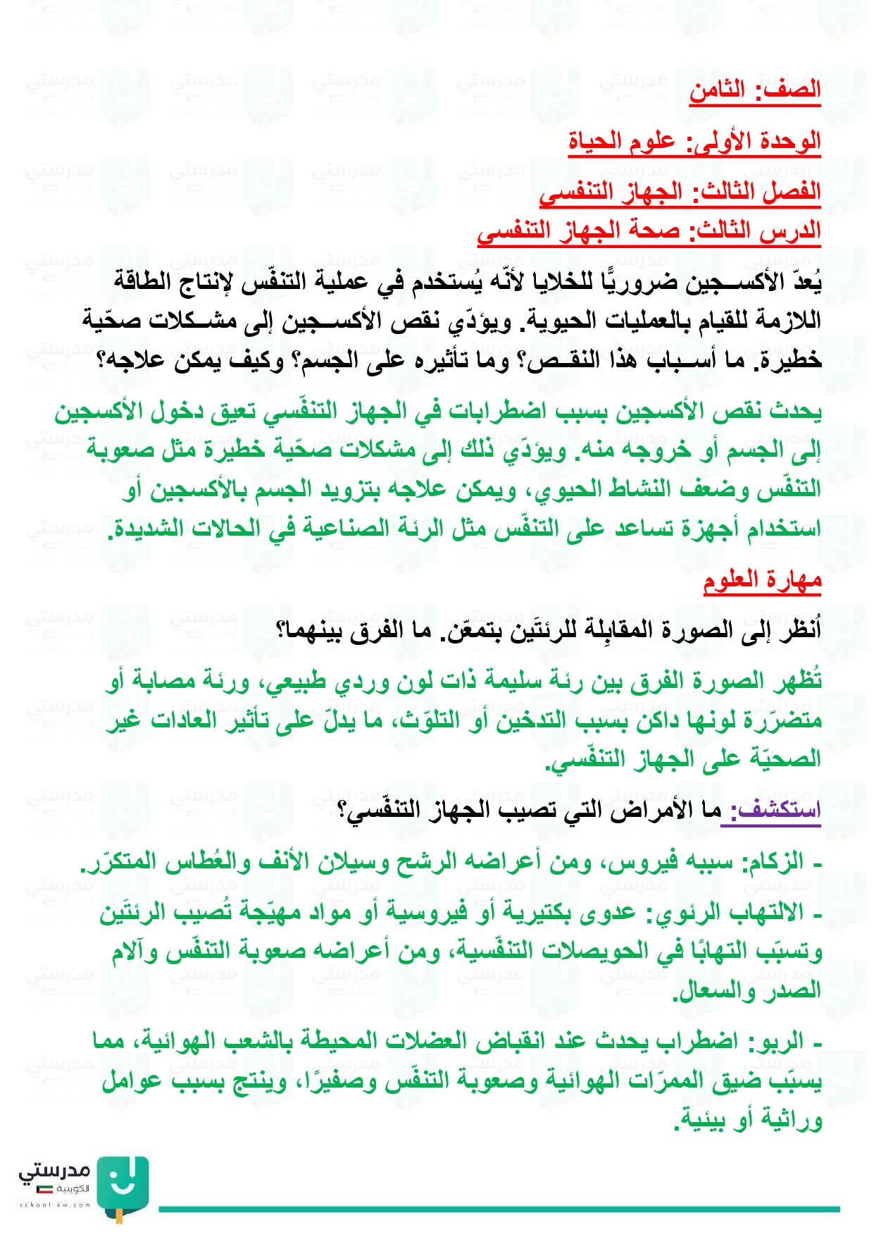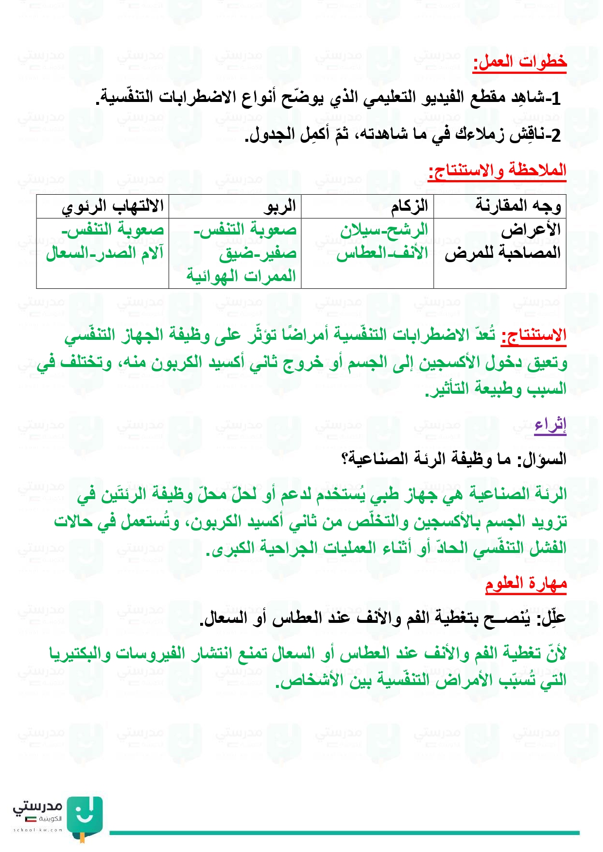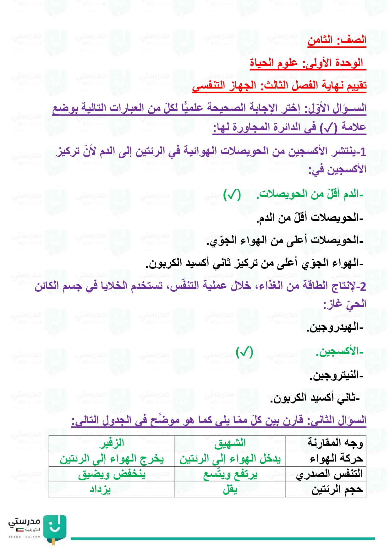 تقويم فصل الجهاز التنفسي