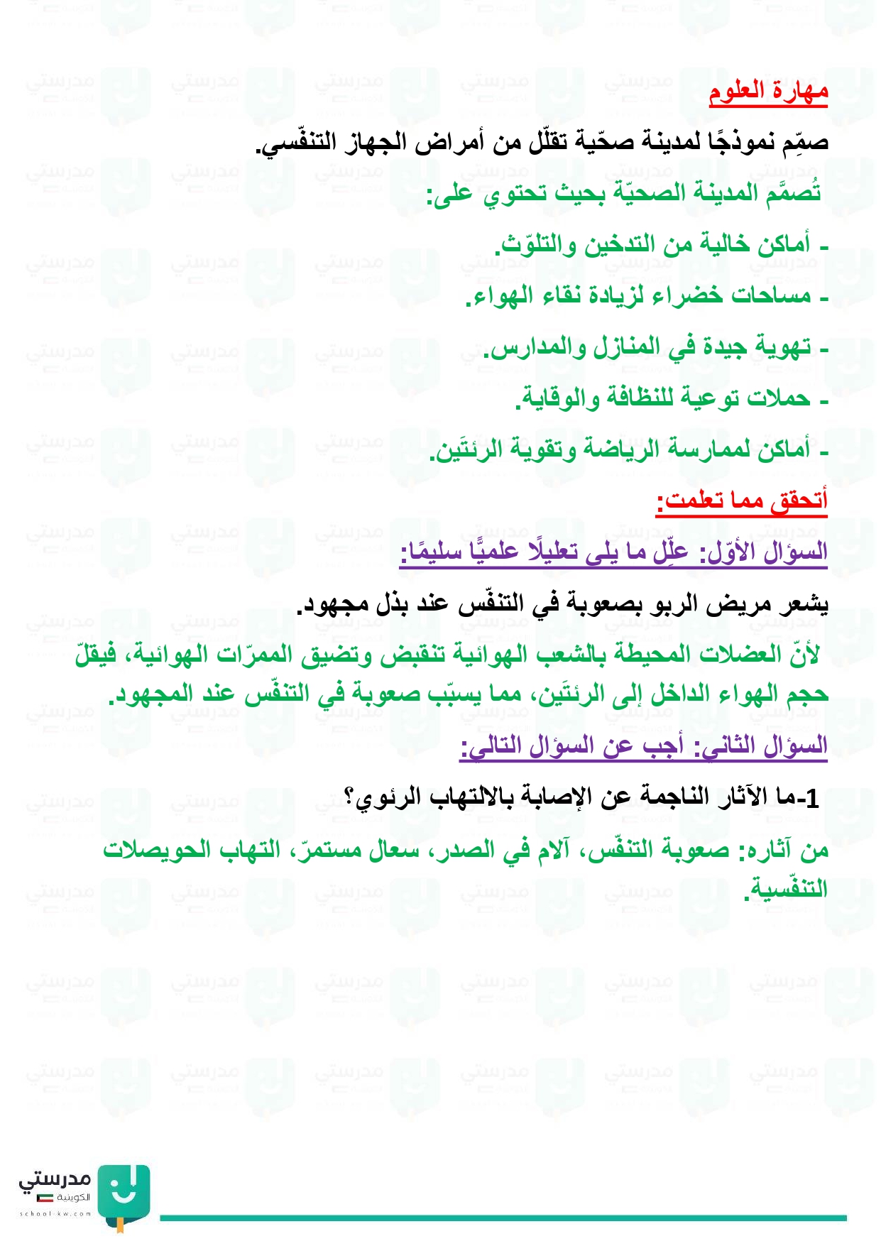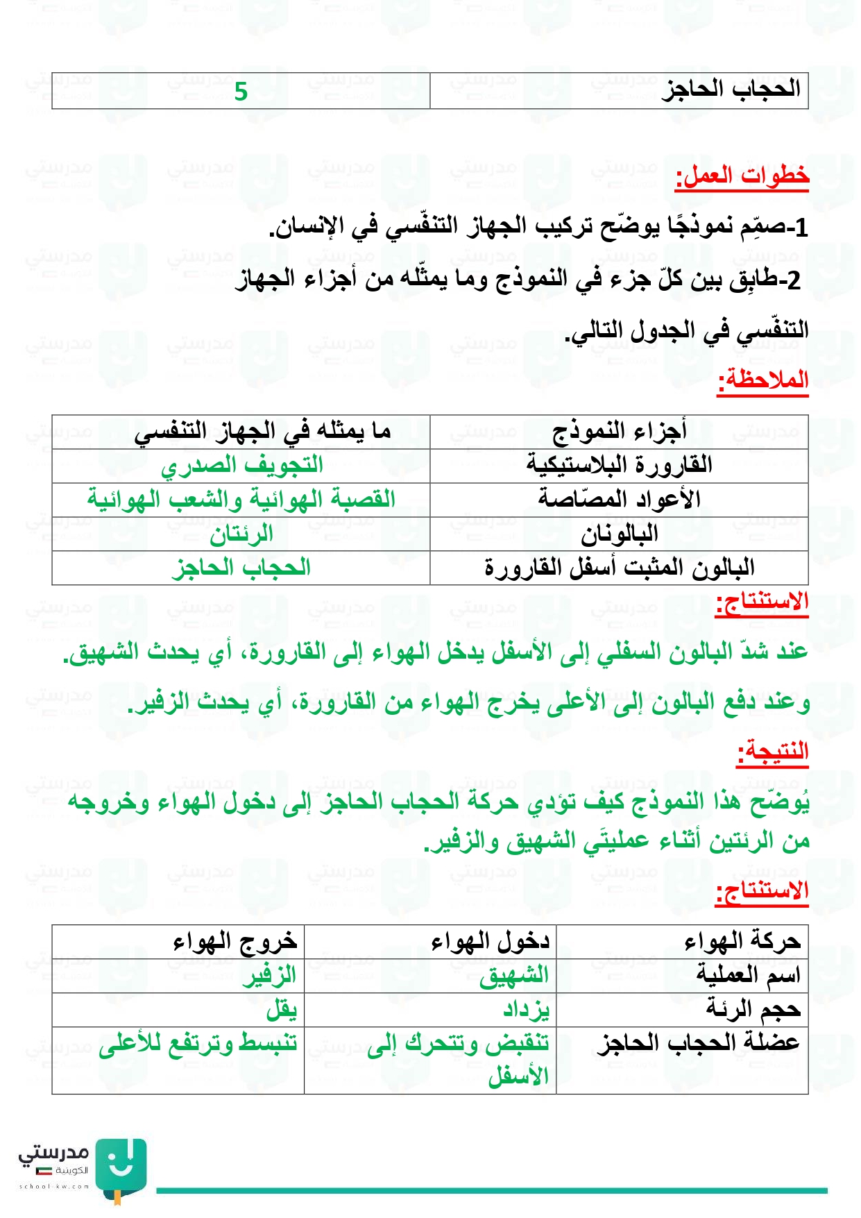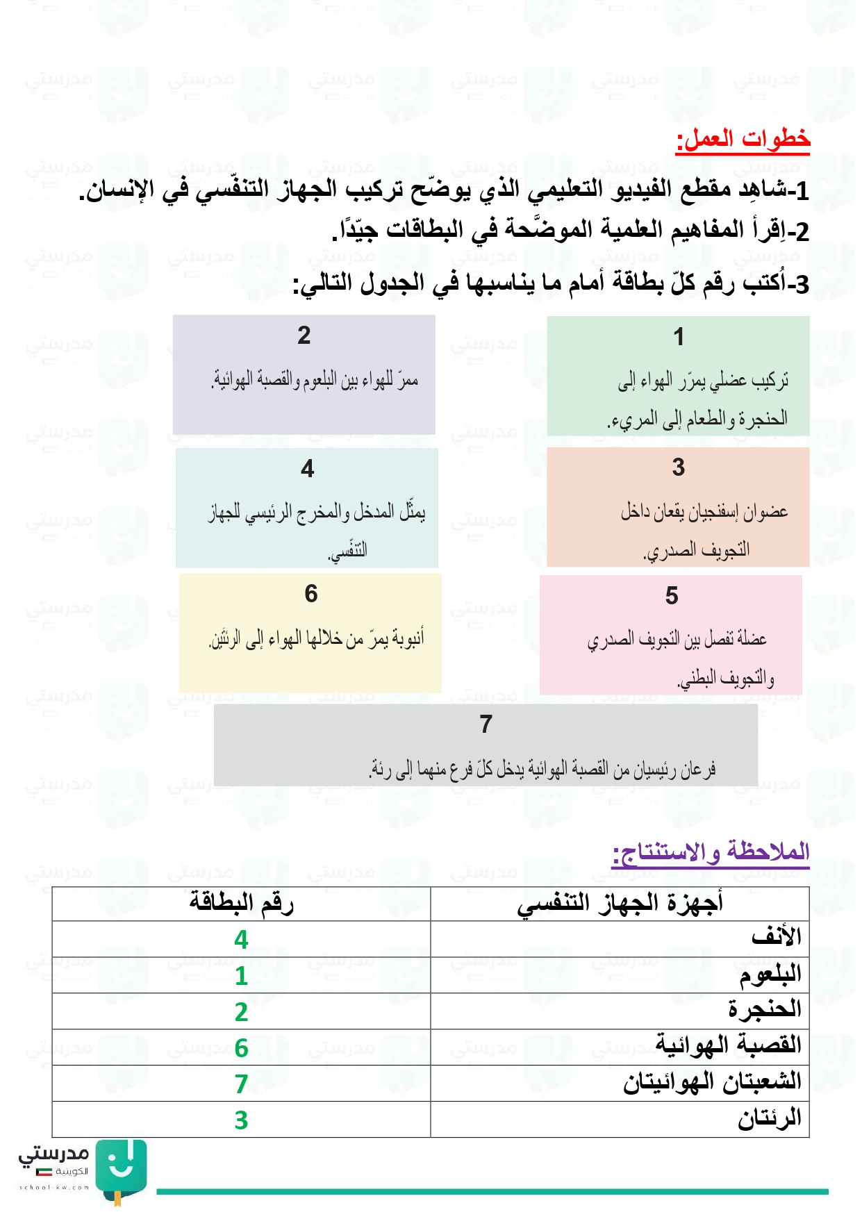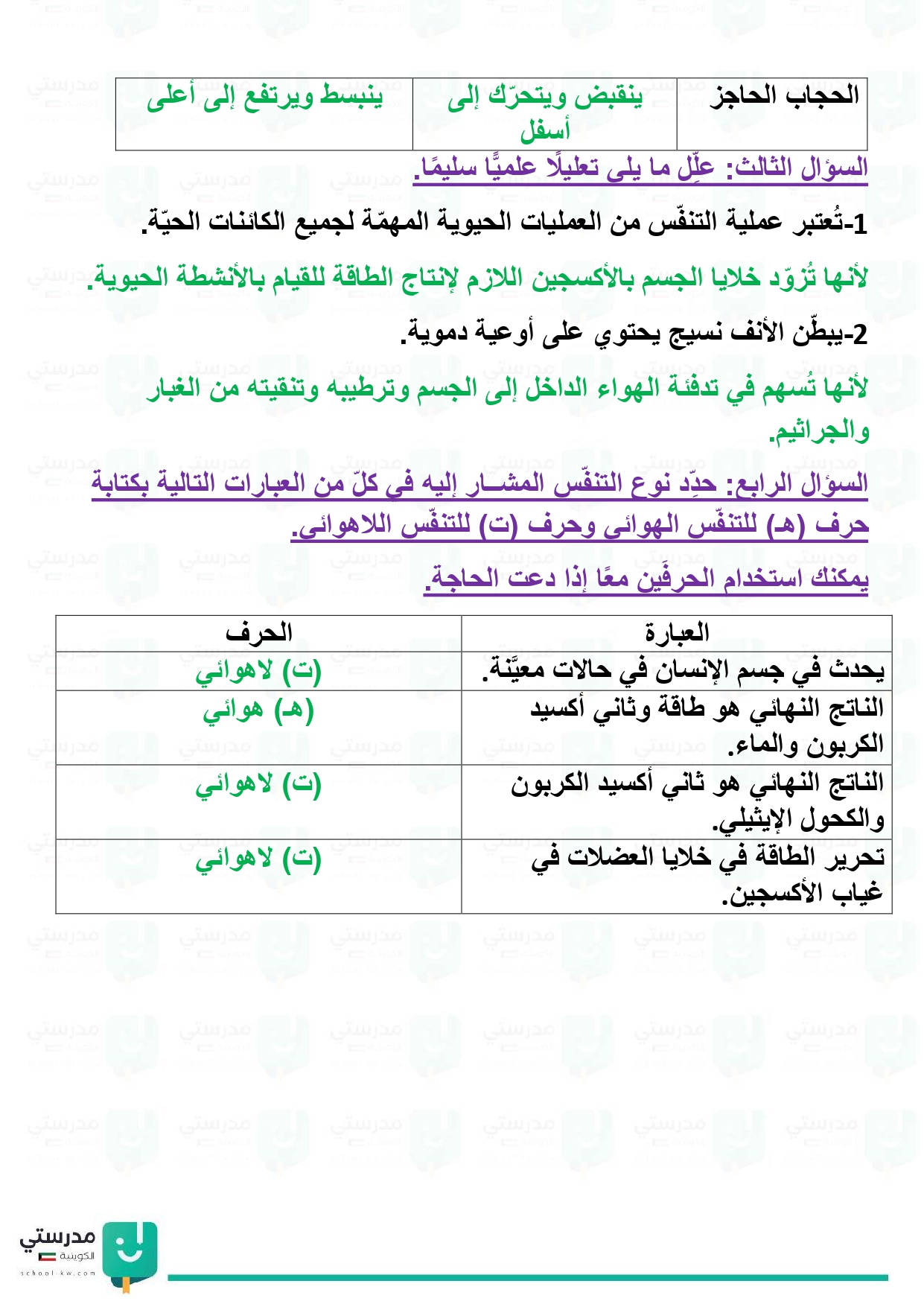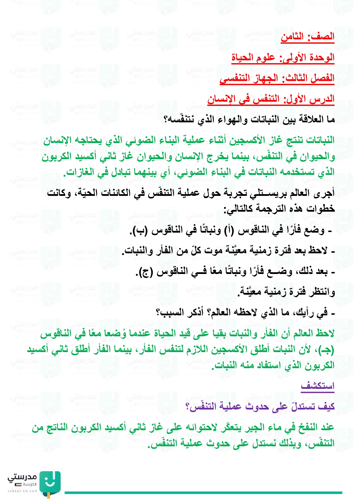 تقويم فصل الجهاز التنفسي