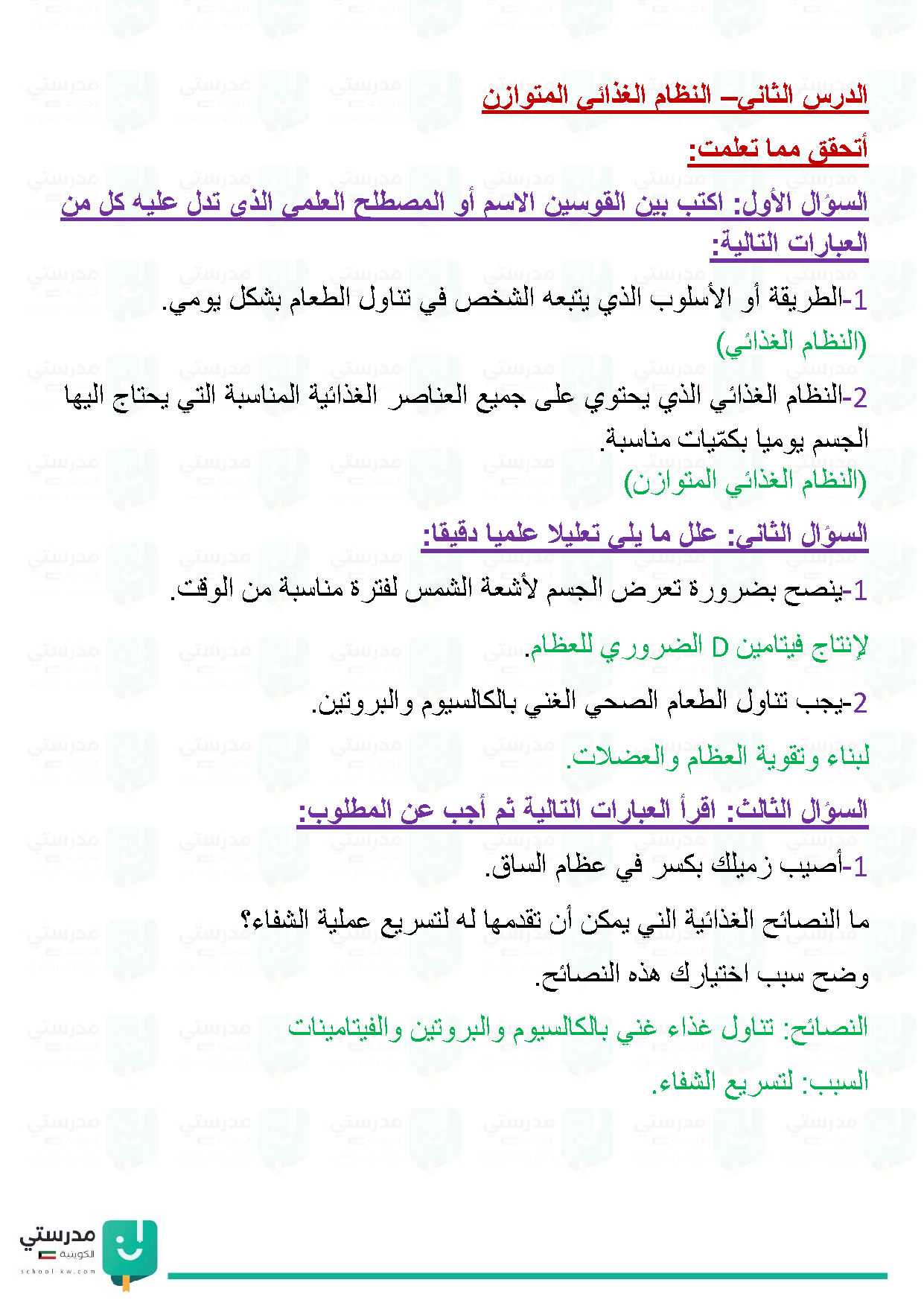 النظام الغذائي المتوازن