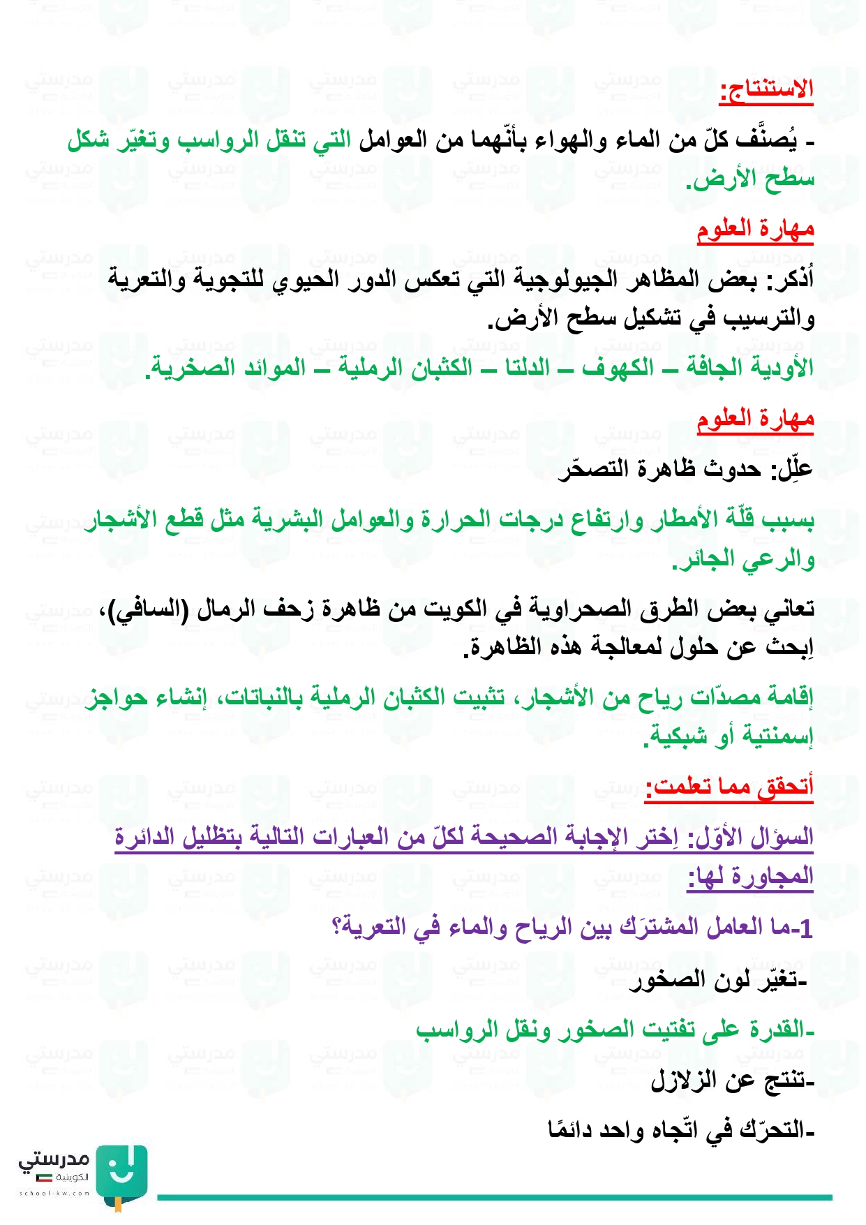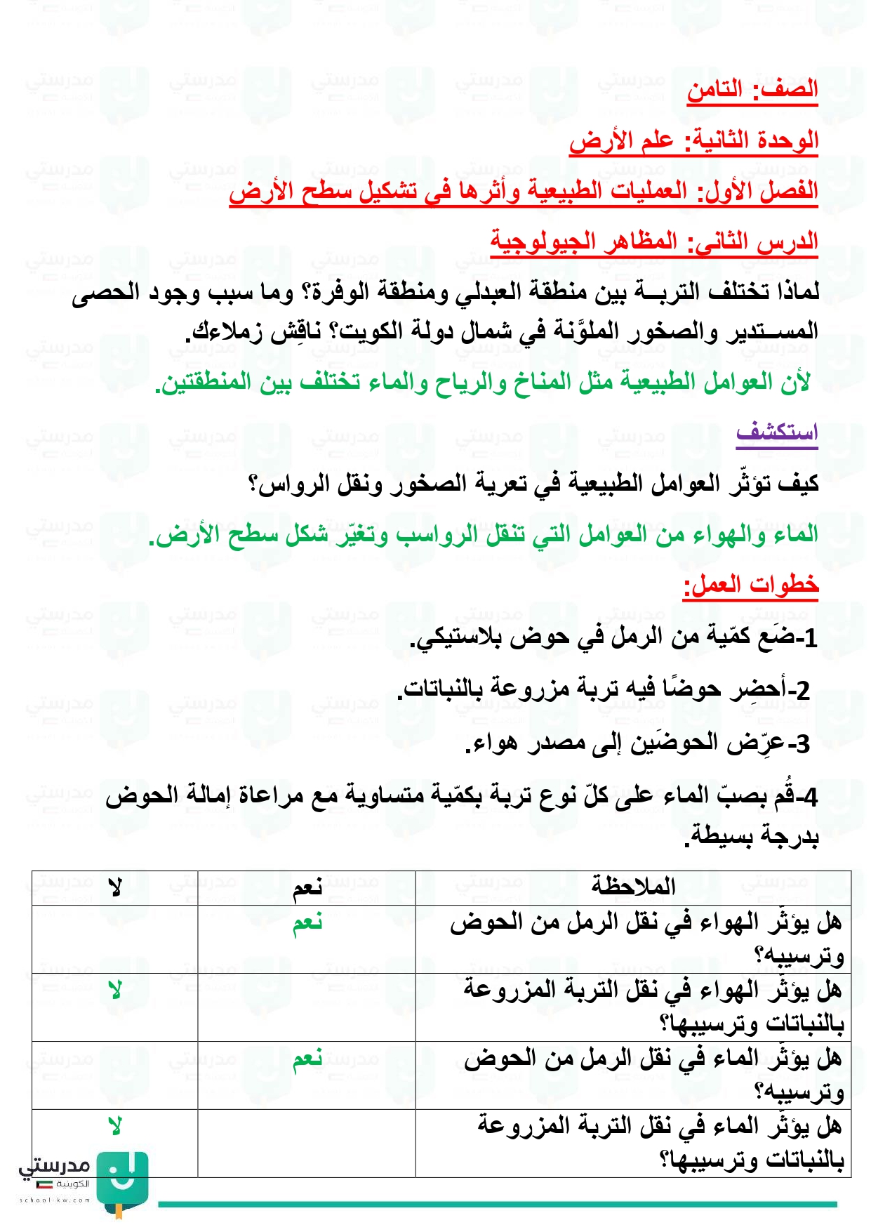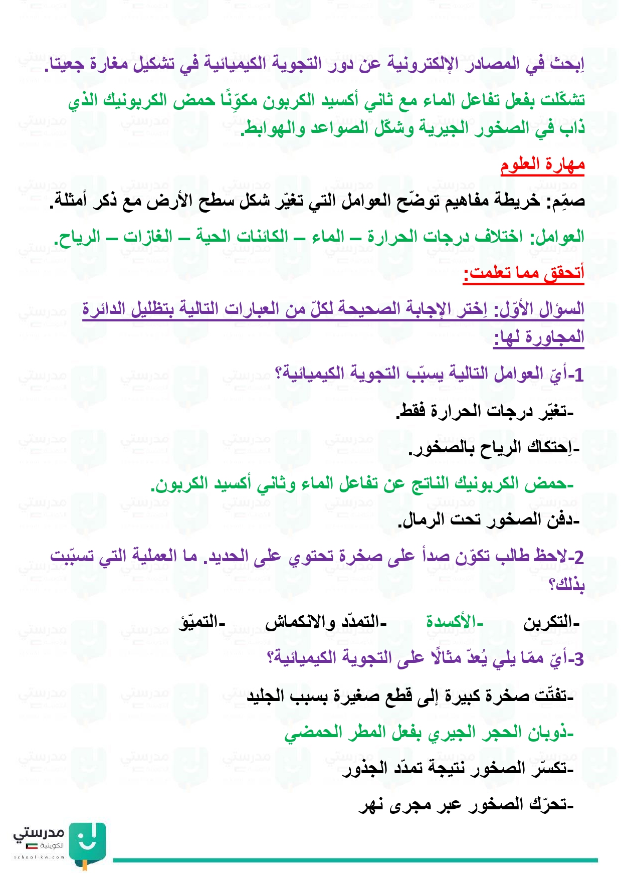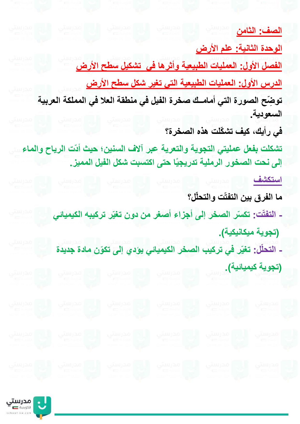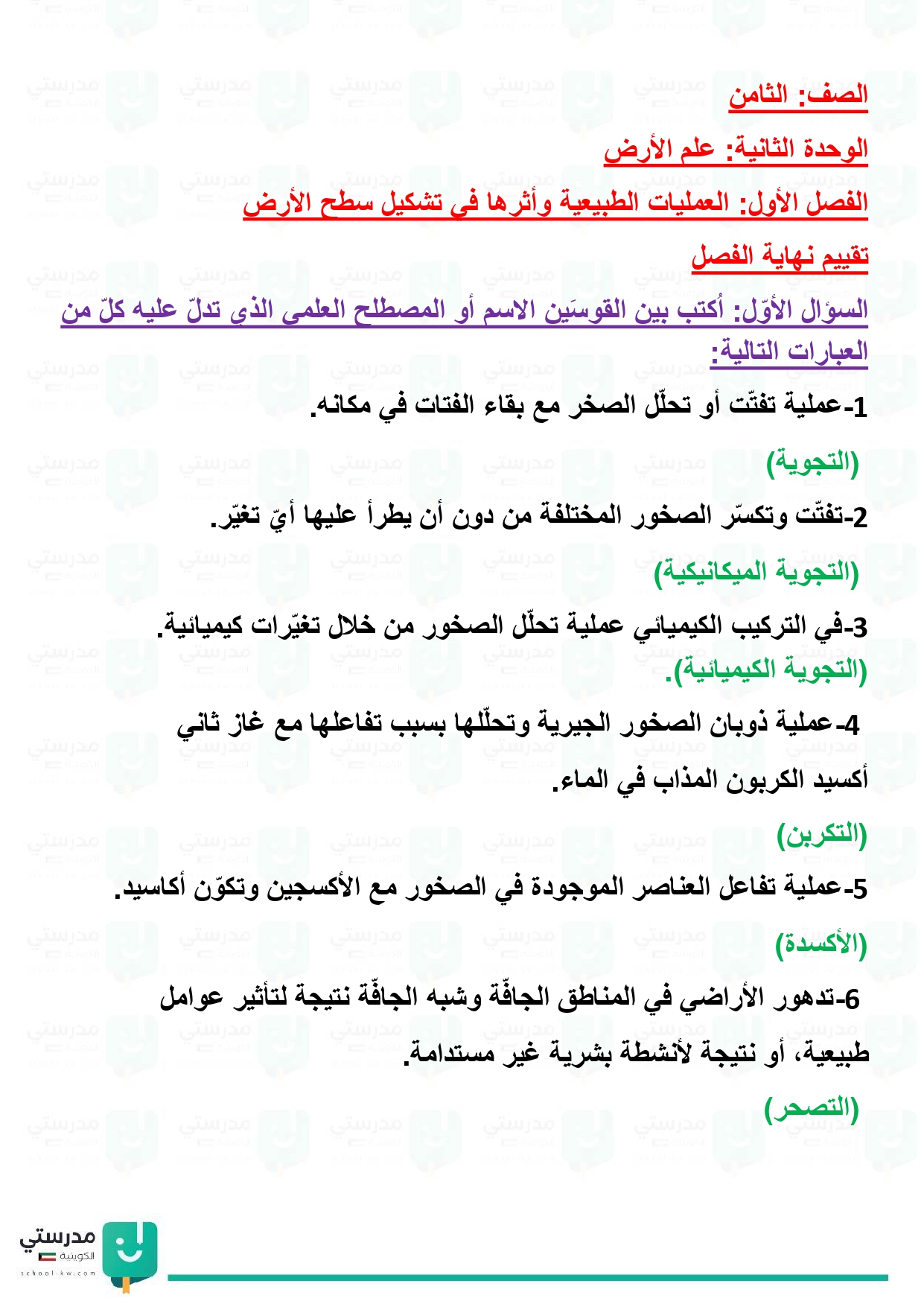 تقويم فصل العمليات الطبيعية وأثرها في تشكيل سطح الأرض