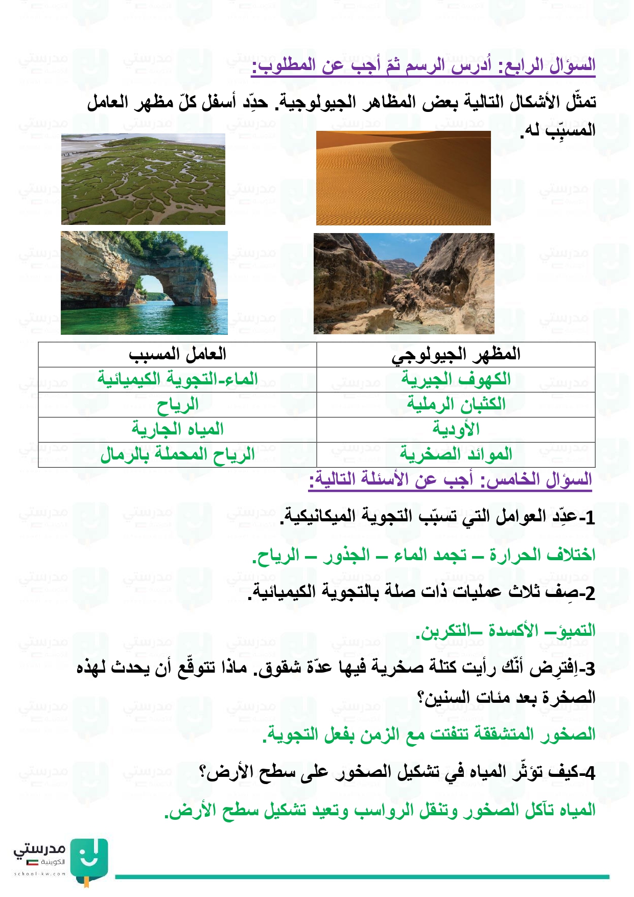 العمليات الطبيعية التي تغير شكل سطح الأرض