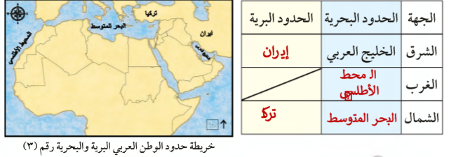 نشاط (2) ابحث باستخدام شبكة الانترنت عن حدود الوطن العربي من جهة الجنوب.
