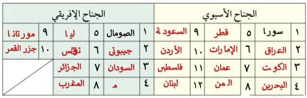 نشاط (2) لا حظ الخريطة رقم (2) ثم دون أسماء الدول العربية في الجناحين.