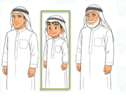 3. ألاحظ - ألون ثوب أصغر شخص باللون البني :