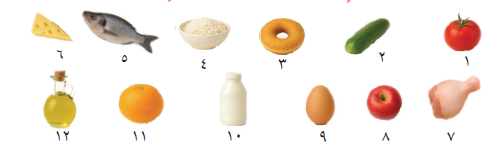 1-صنف الأطعمة الموجودة أمامك وفق ما تراه مناسباً في ست مجموعات.