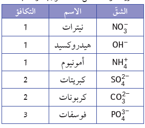 2 - بعض الشقوق الأيونية تتكوّن من أكثر من ذرّة واحدة وتُسمّى الشقوق الأيونية المركبة وتعمل كوحدة واحدة. (……………)