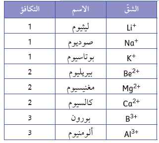 1 - يحتوي المركَّب الأيوني دائمًا على شقّ موجَب وشقّ سالب.