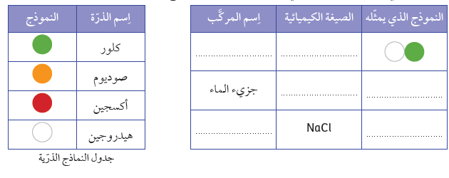 السؤال الثاني: أكمِل الجدول التالي بالاستعانة بجدول النماذج الذرّية: