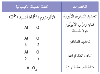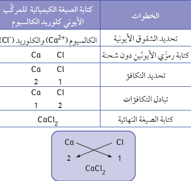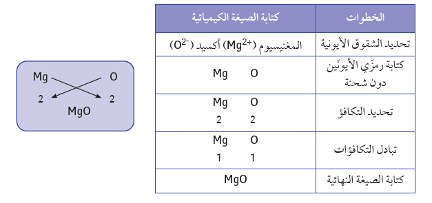 خطوات كتابة الصيغة الكيميائية للمركَّب الأيوني باستخدام طريقة تبادل التكافؤات: