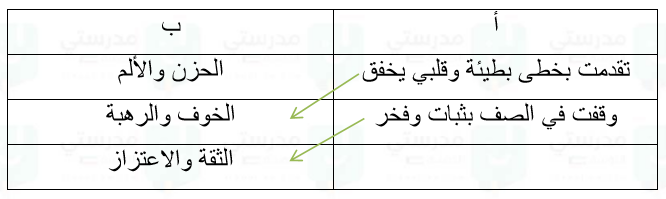 د - صل بين كل عبارة في المجموعة (أ) وما توحي به من مشاعر في المجموعة