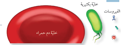 كما لاحظوا أنّ الفيروسات تتباين في أشكالها، ولا تشبه الكائنات الحيّة، لذا فهي ليست خلايا، وليس لها أيّ تراكيب خلوية مثل: السيتوبلازم، غشاء الخليّة أو النواة. ولإعطائك فكرة عن حجم هذه الفيروسات، فإنّ حوالي 1000000 فيروس يمكن أن يتراصّ فوق رأس دبّوس واحد. لاحِظ حجم الفيروس وقارِنه بين حجم خليّة دم حمراء وخليّة بكتيرية، كما في الشكل