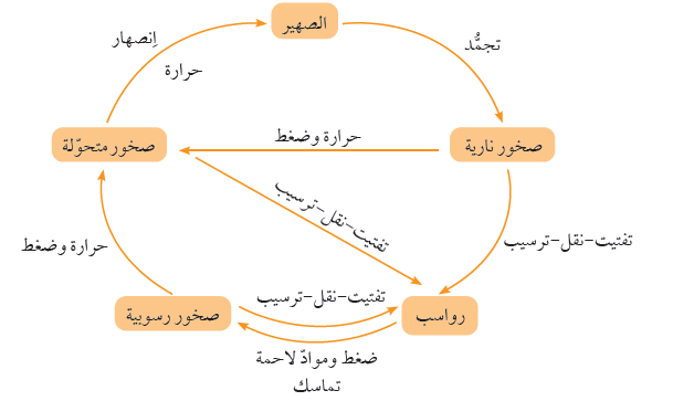 - الصخرة الواحدة في الطبيعة تمرّ بعدّة تحوّلات لتصبح أنواعًا مختلفة من الصخور. يُطلق على هذه