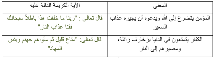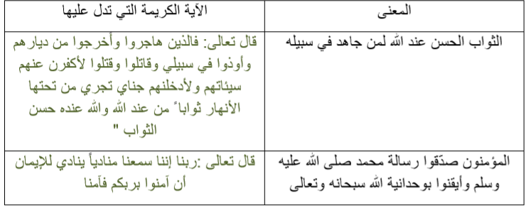 حدد لكل معنى مما يأتي الآية الكريمة التي تدل عليه من النص القرآني السابق