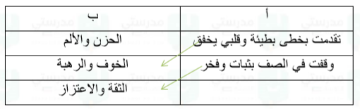 د - صل بين كل عبارة في المجموعة (أ) وما توحي به من مشاعر في المجموعة