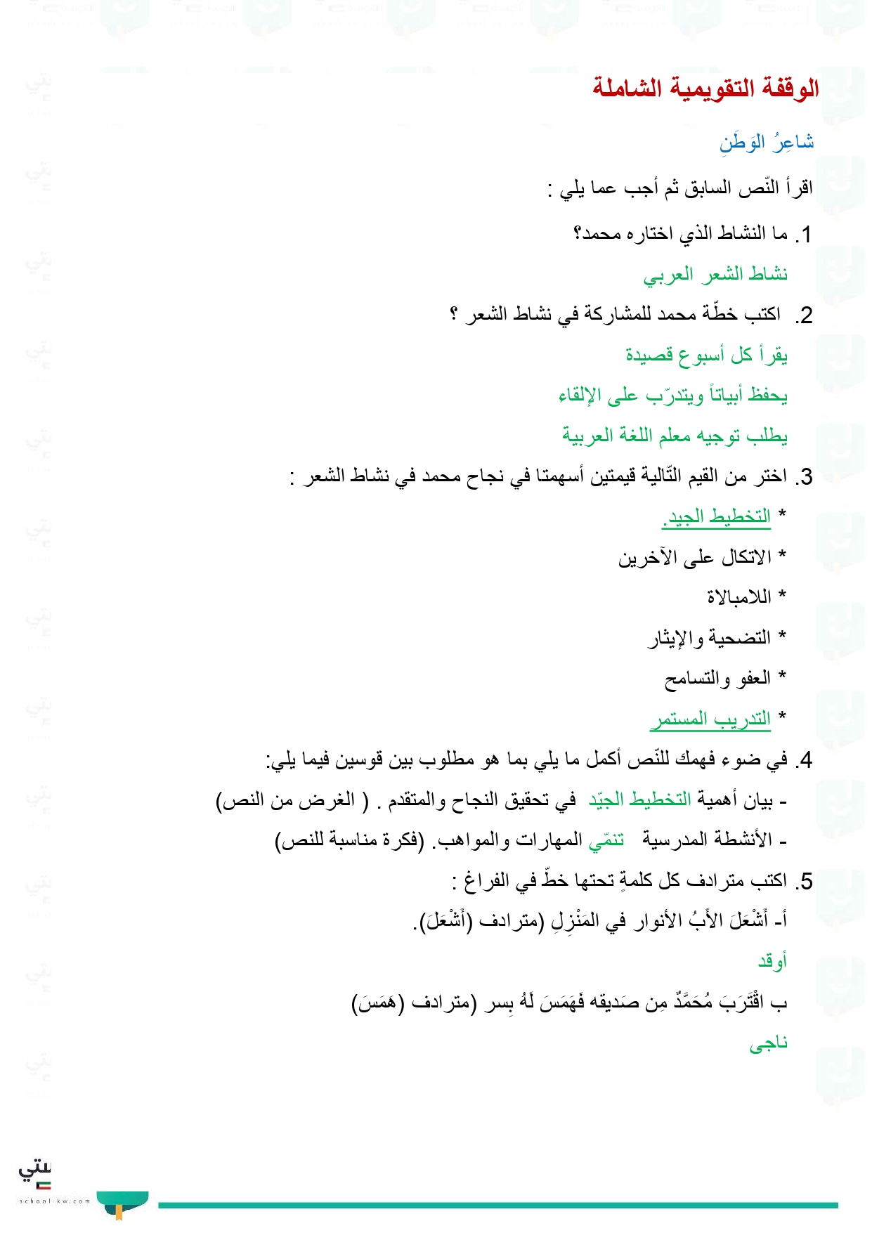 الوقفة التقويمية الشاملة