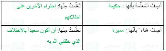 4. أصف بكلمة كلا من الشخصيتين التاليتين، ثم أكتب ما تَعَلَّمْتُهُ مِنهما :