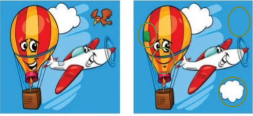 - أضع دائرة حول الأشياء المختلفة في الصورتين الآتيتين :