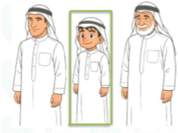 3 ألاحظ - ألون ثوب أصغر شخص باللون البني :