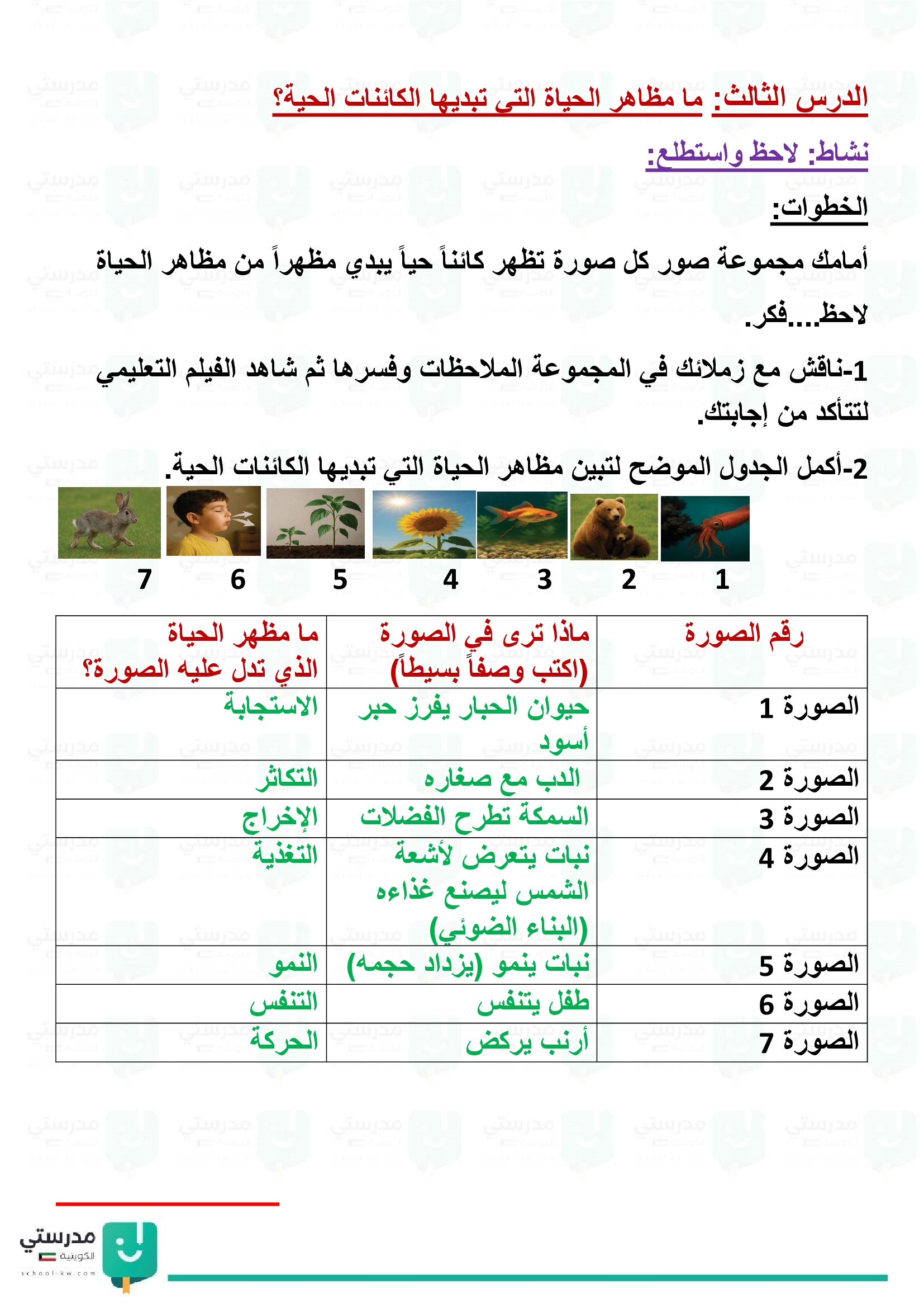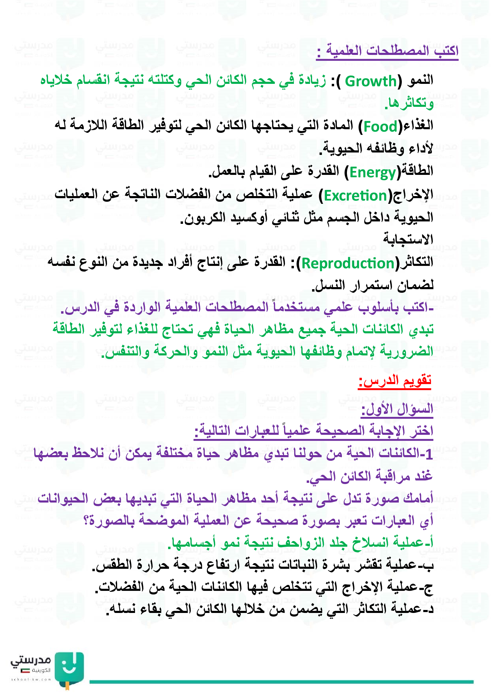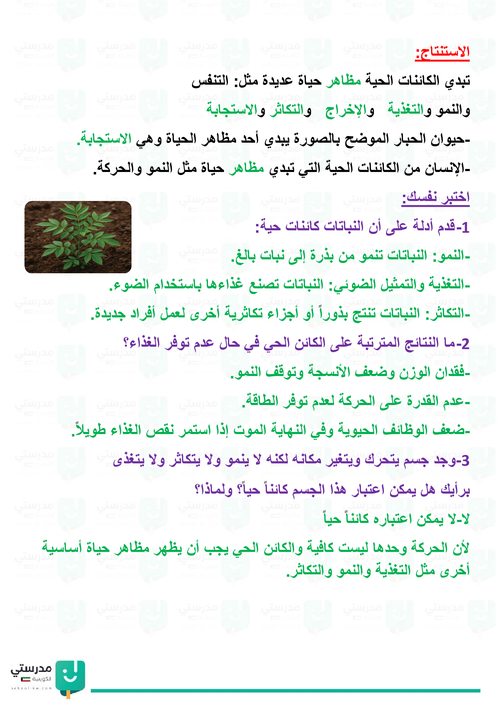 ما مظاهر الحياة التي تبديها الكائنات الحية؟