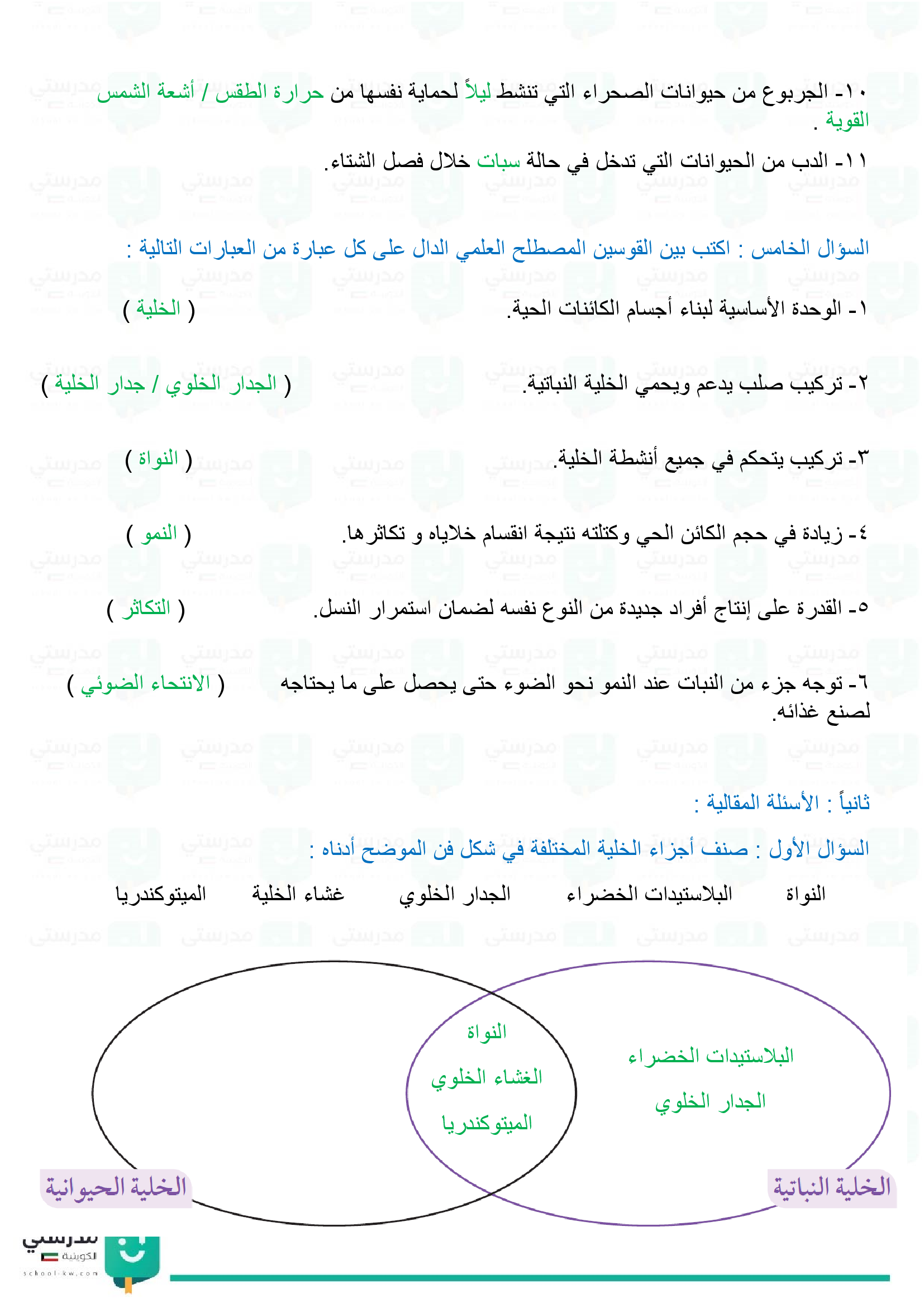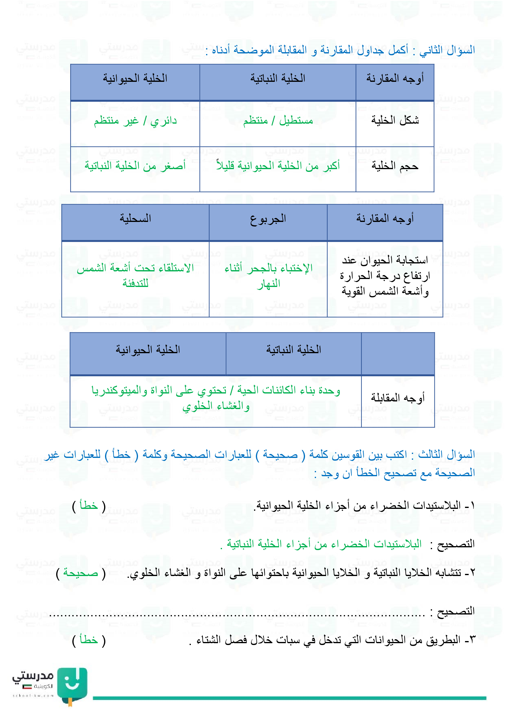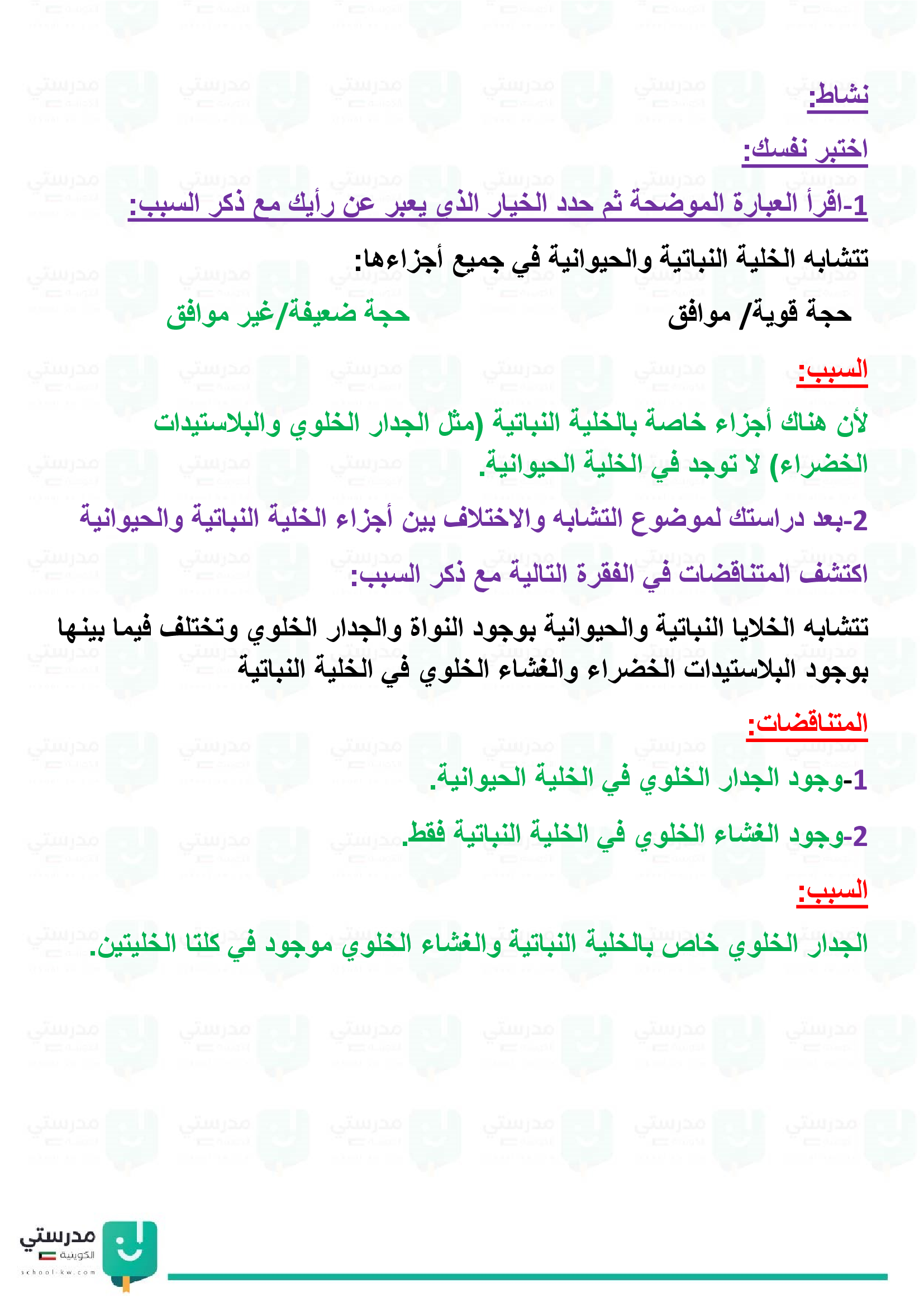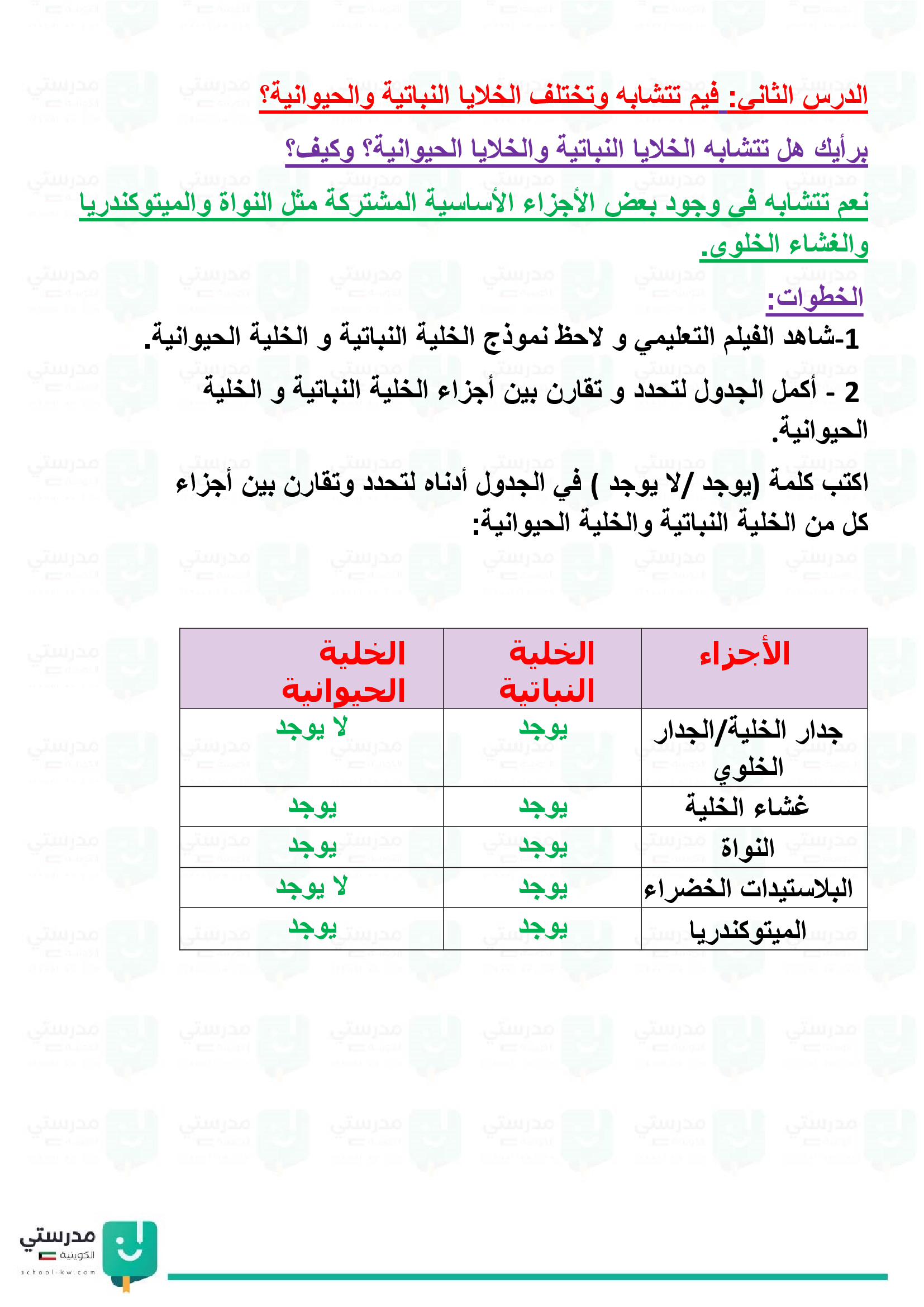 فيم تتشابه وتختلف الخلايا النباتية والحيوانية؟