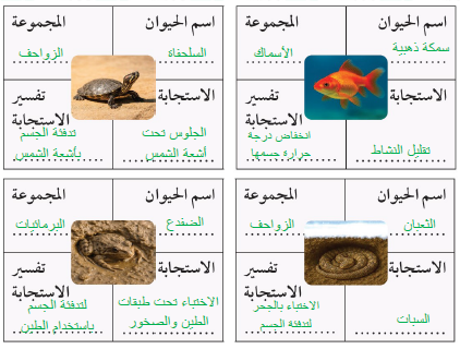 • الحيوانات الفقارية ذات الدم البارد درجة حرارة أجسامها تتغير بتغير درجة حرارة الطقس.