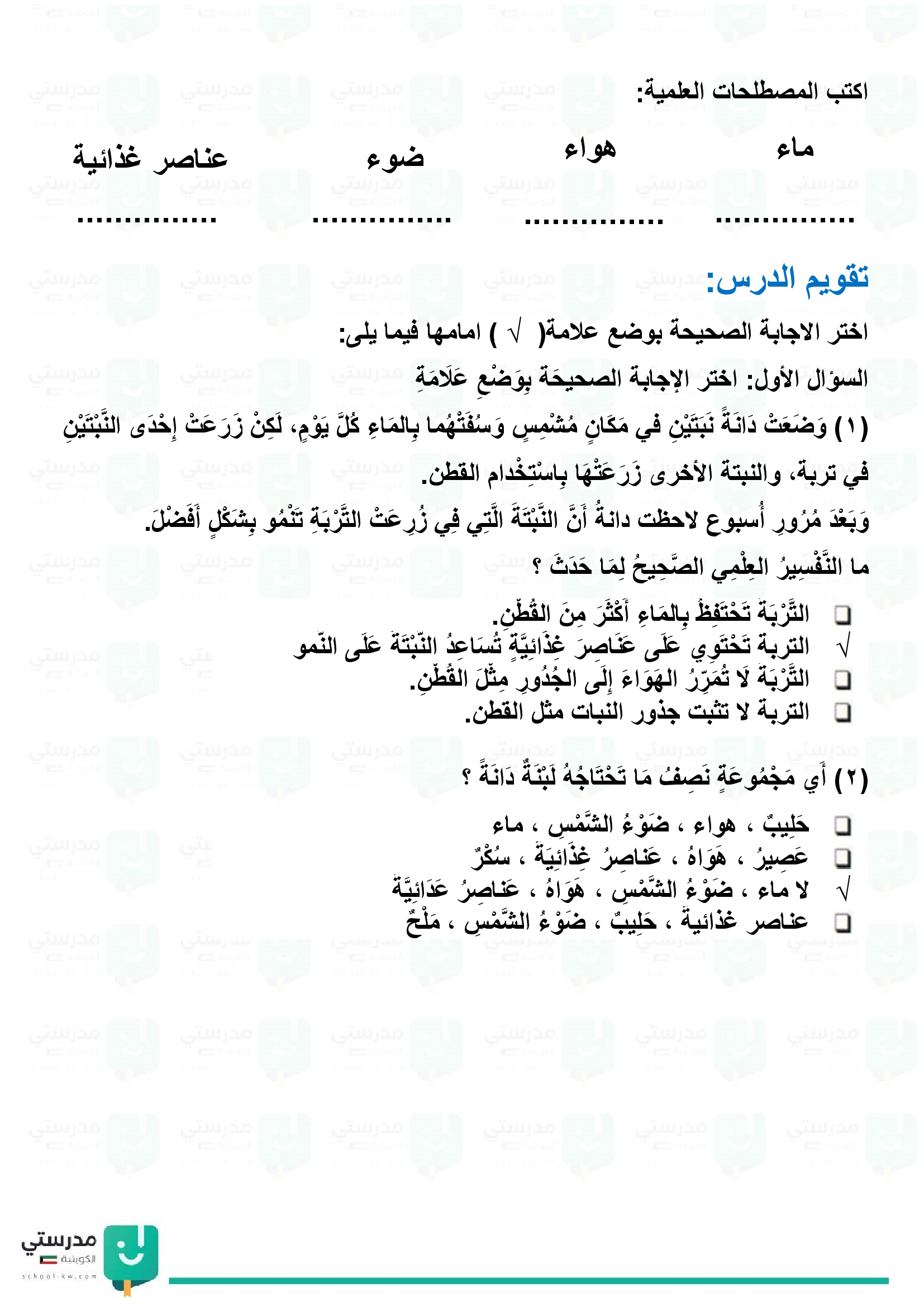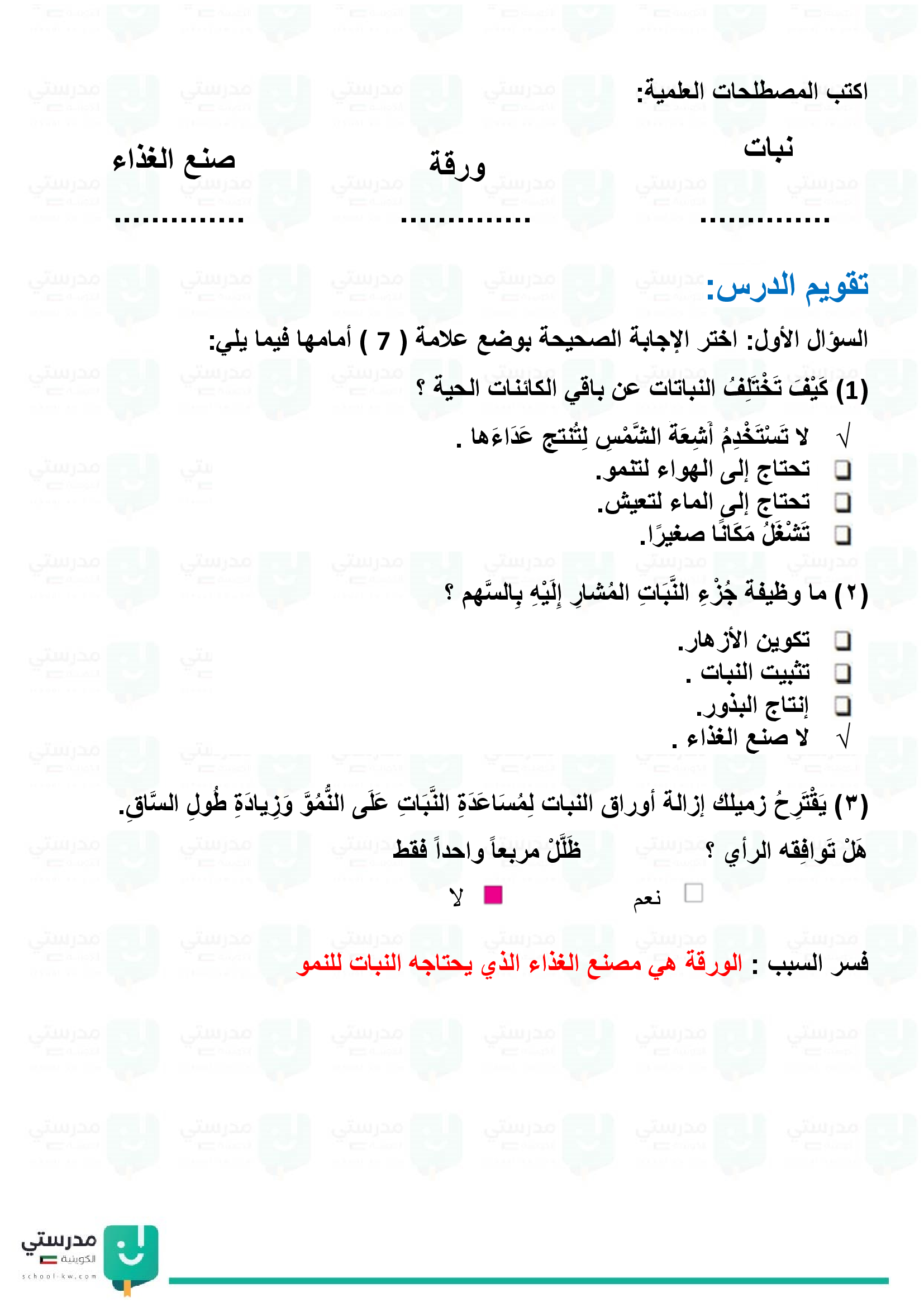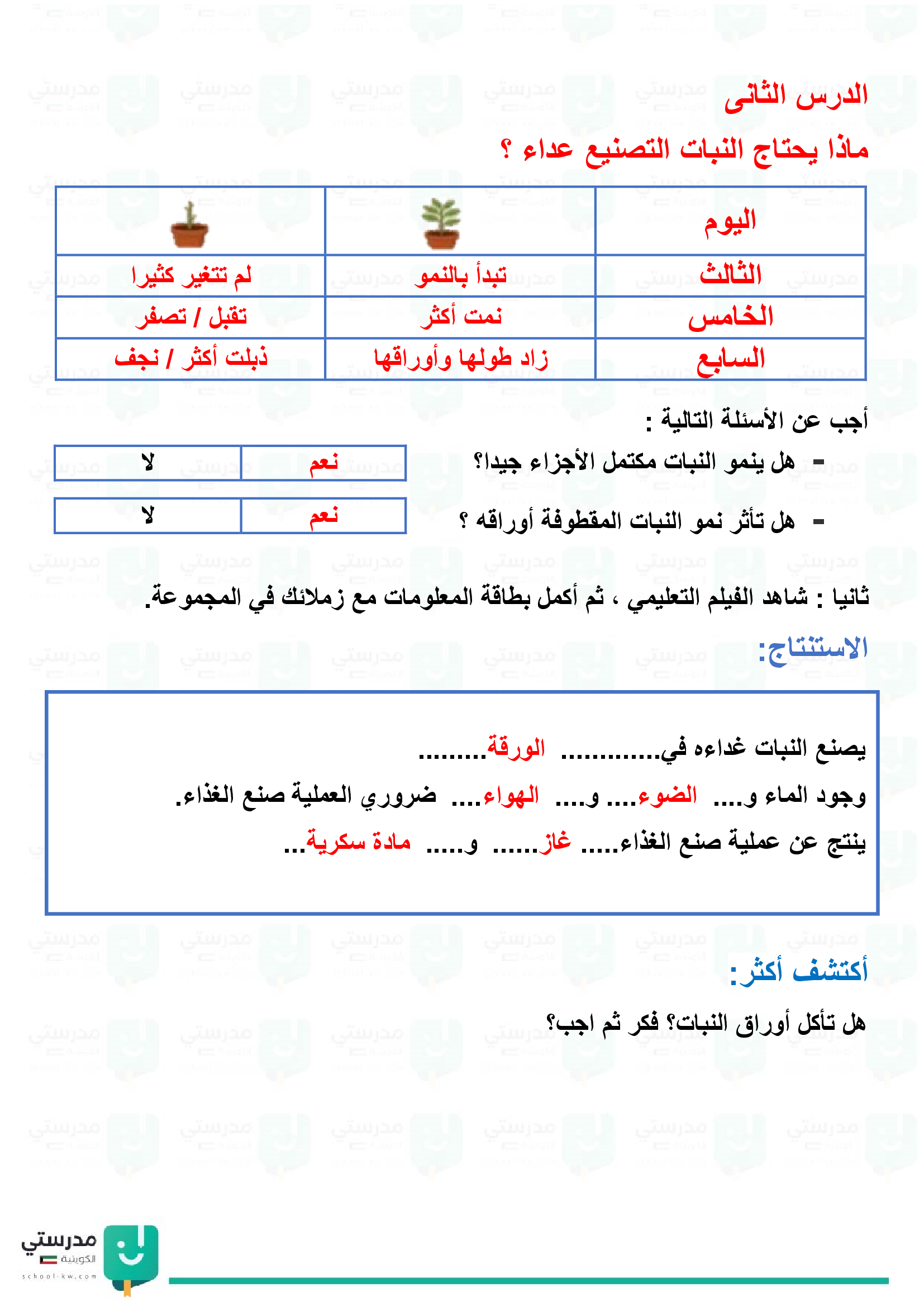ماذا يحتاج النبات لتصنيع الغذاء؟