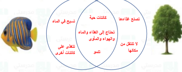 - اكتب أوجه الشبه والاختلاف بين الكائنات الحية من خلال مخطط فن