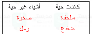 في الفراغات المخصصة أدناه، اكتب كائنين حيين وشيئين