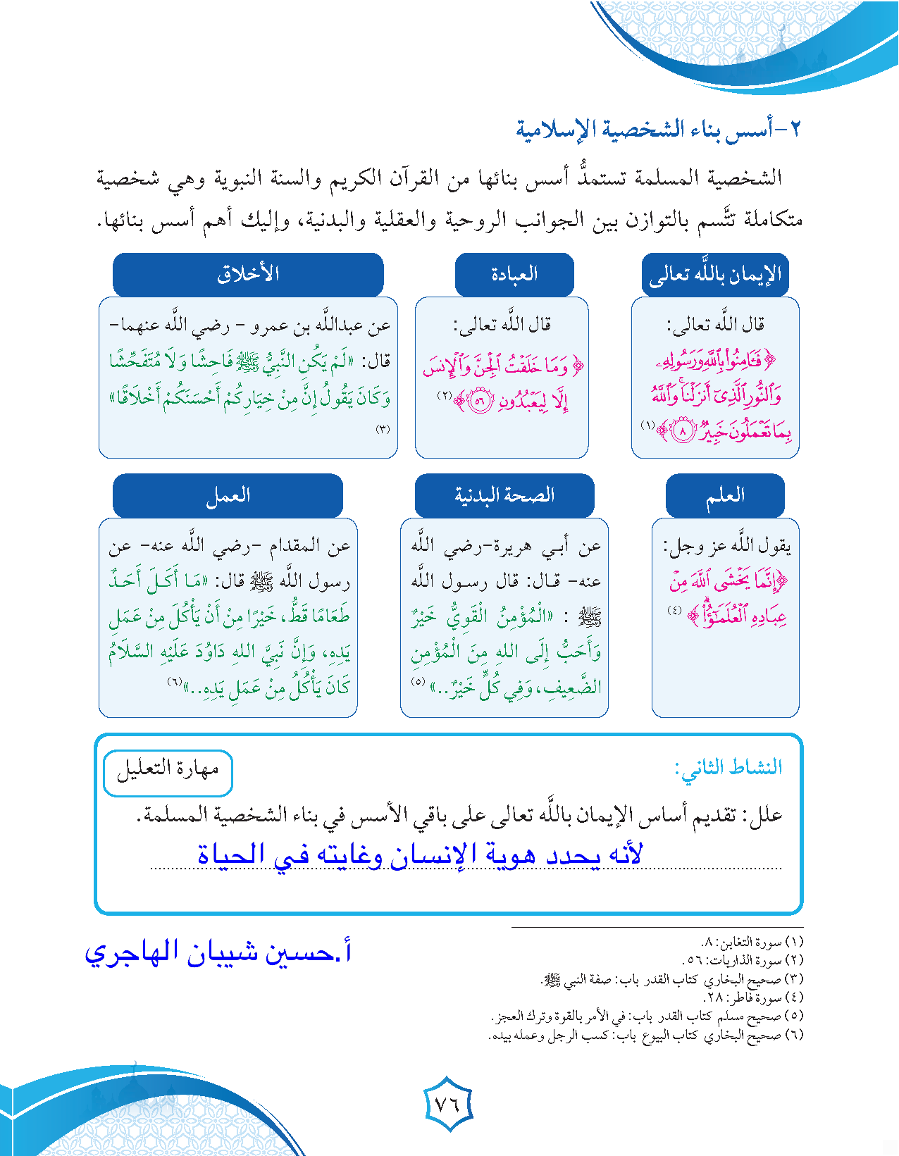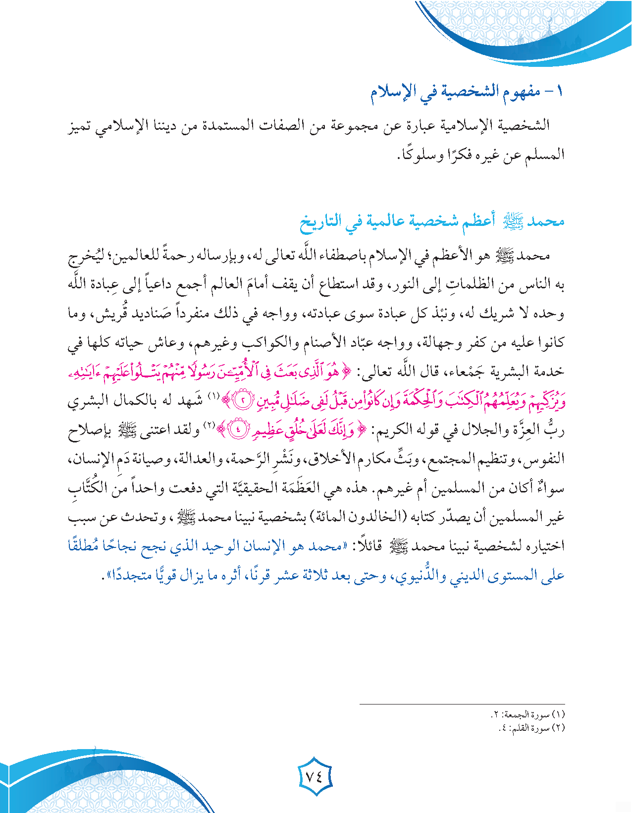 مفهوم الشخصية وعناصر بنائها في الاسلام
