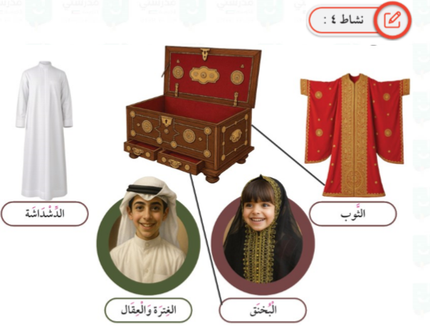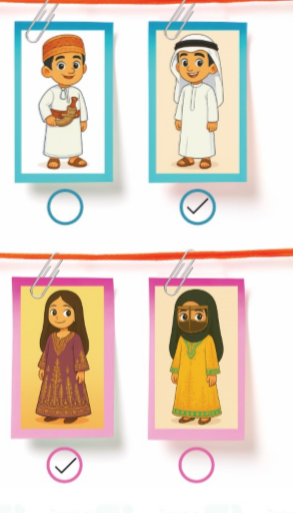أضعُ عَلامَة ( صح ) أَسْفَلَ الصُّورَةِ الَّتِي تُمَثَلُ الزِّي الْكُويتي :